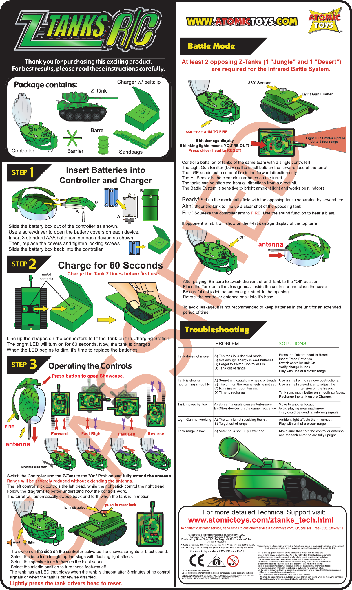 Atomic Toys, LLC Remote Control Toy Transmitter 27 Mhz Tank instruction 2