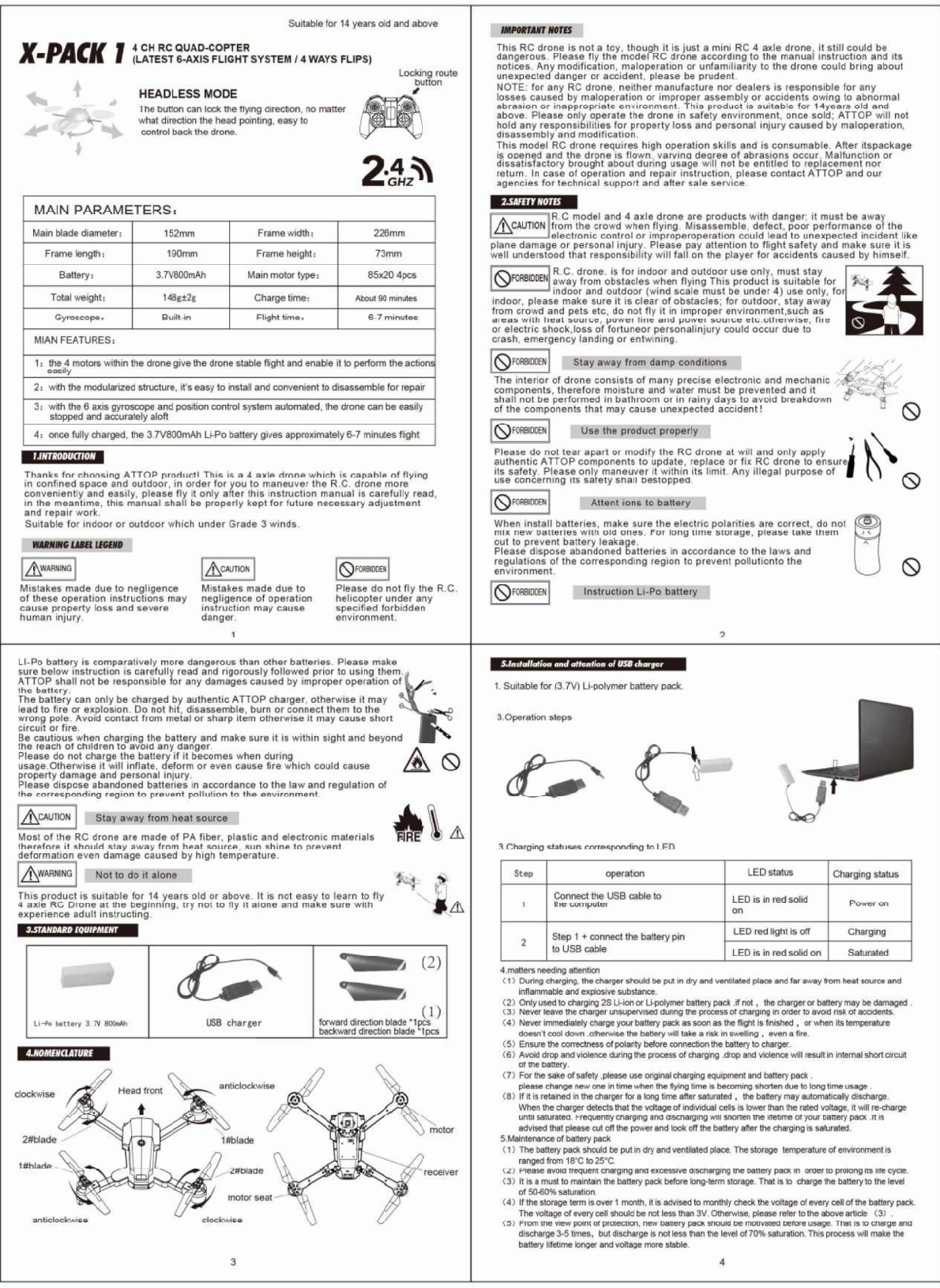 Attop Technology 0754XT1W Radio Controlled Toy Quadcopter with CAM User Manual