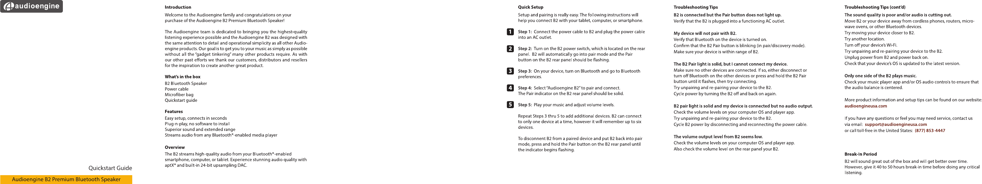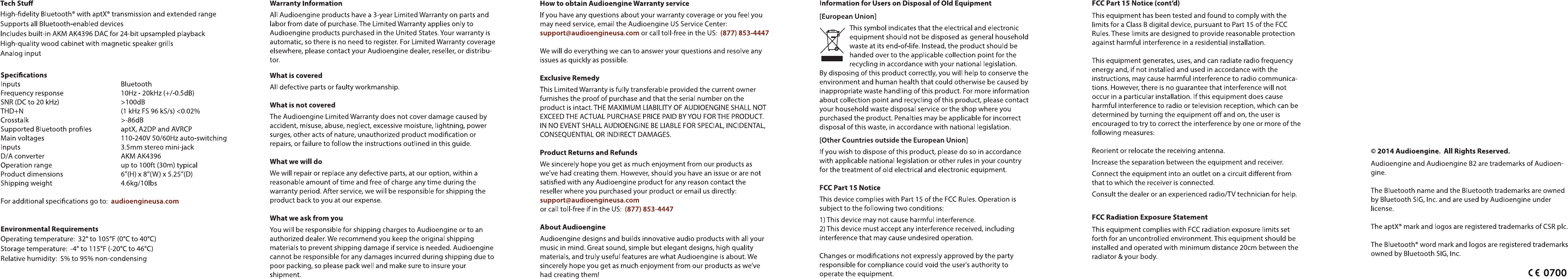 Audioengine B2 B2 bluetooth speaker User Manual B2 quickstart guide V01