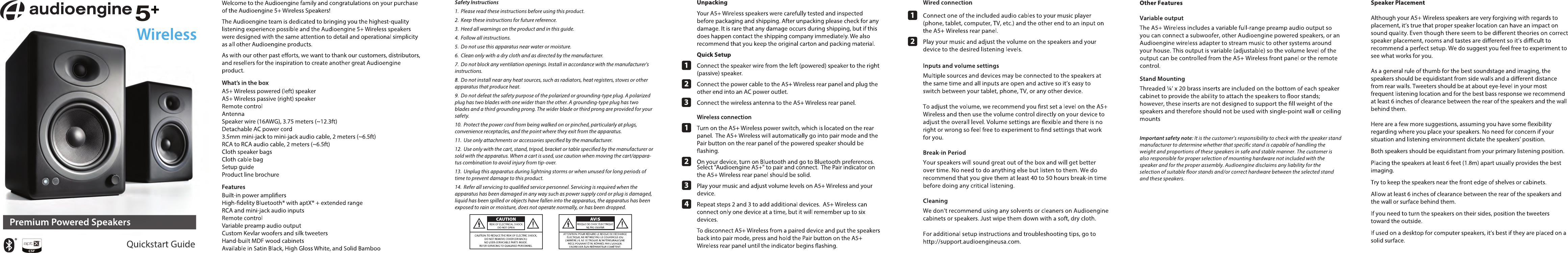 Audioengine Ltd A5+desktop powered bluetooth speaker A5 Wireless quickstart guide V01