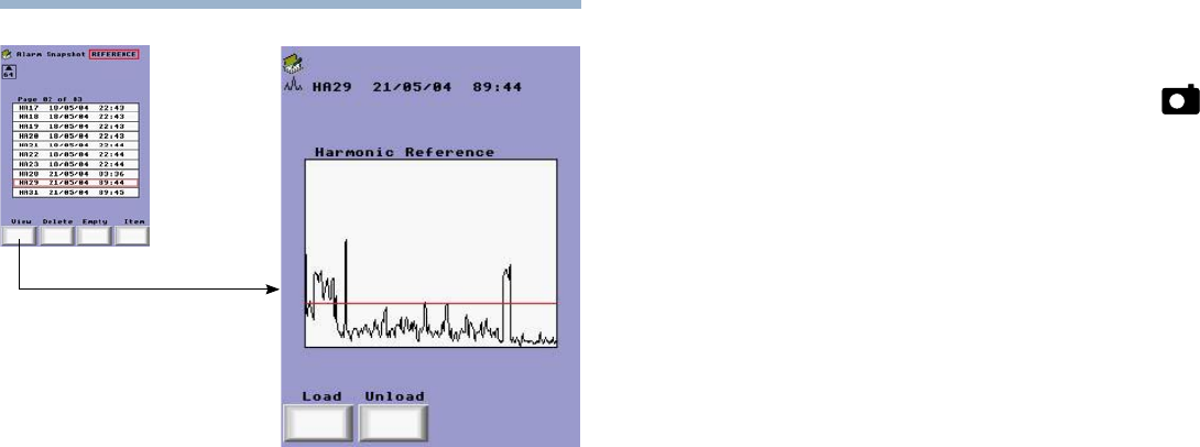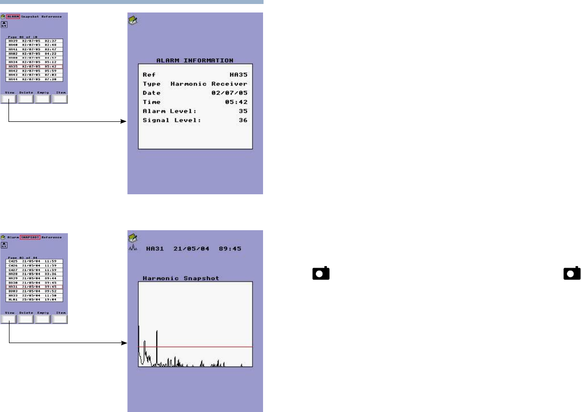 The EVENT LOG holds details of Alarms, screen Snapshots and Reference spectrums. These are