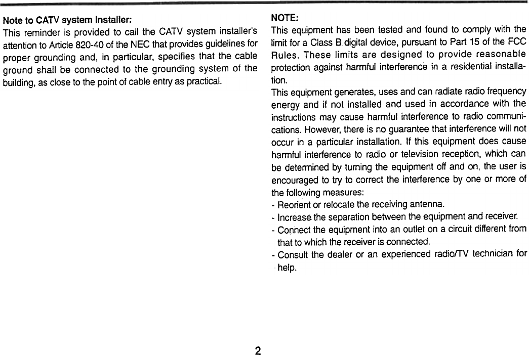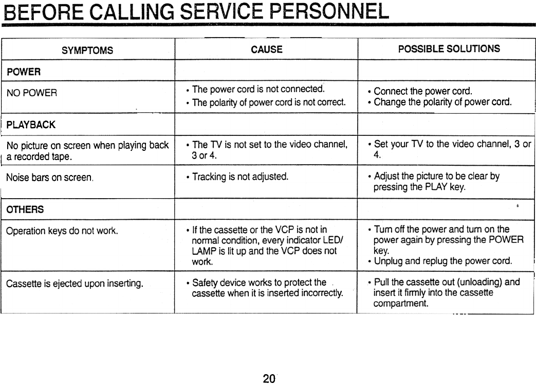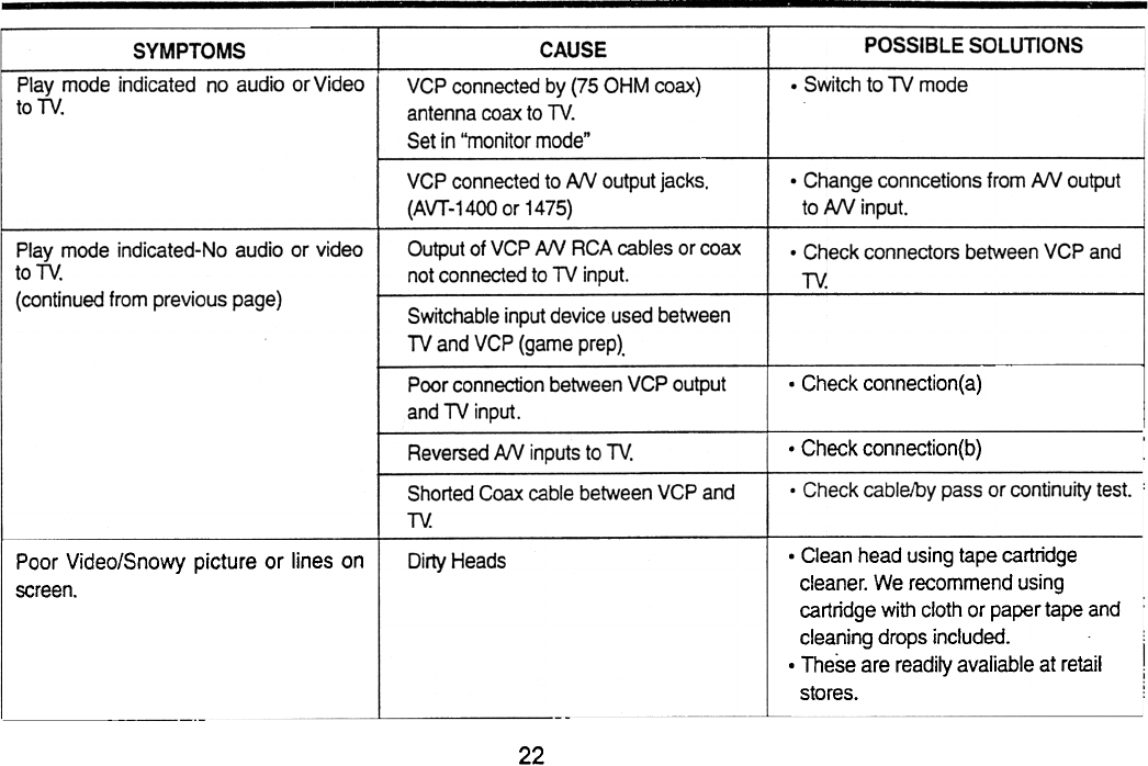 This warranty does not extend to the elimination of extemally generated static or noise, to the correction of antenna problems, to costs