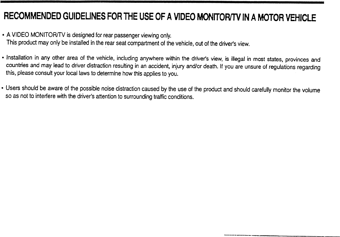 RECOMMENDED GUIDEUNES FOR THE USE OF A VIDEO MONITORf1V IN A MOTOR VEHICLE