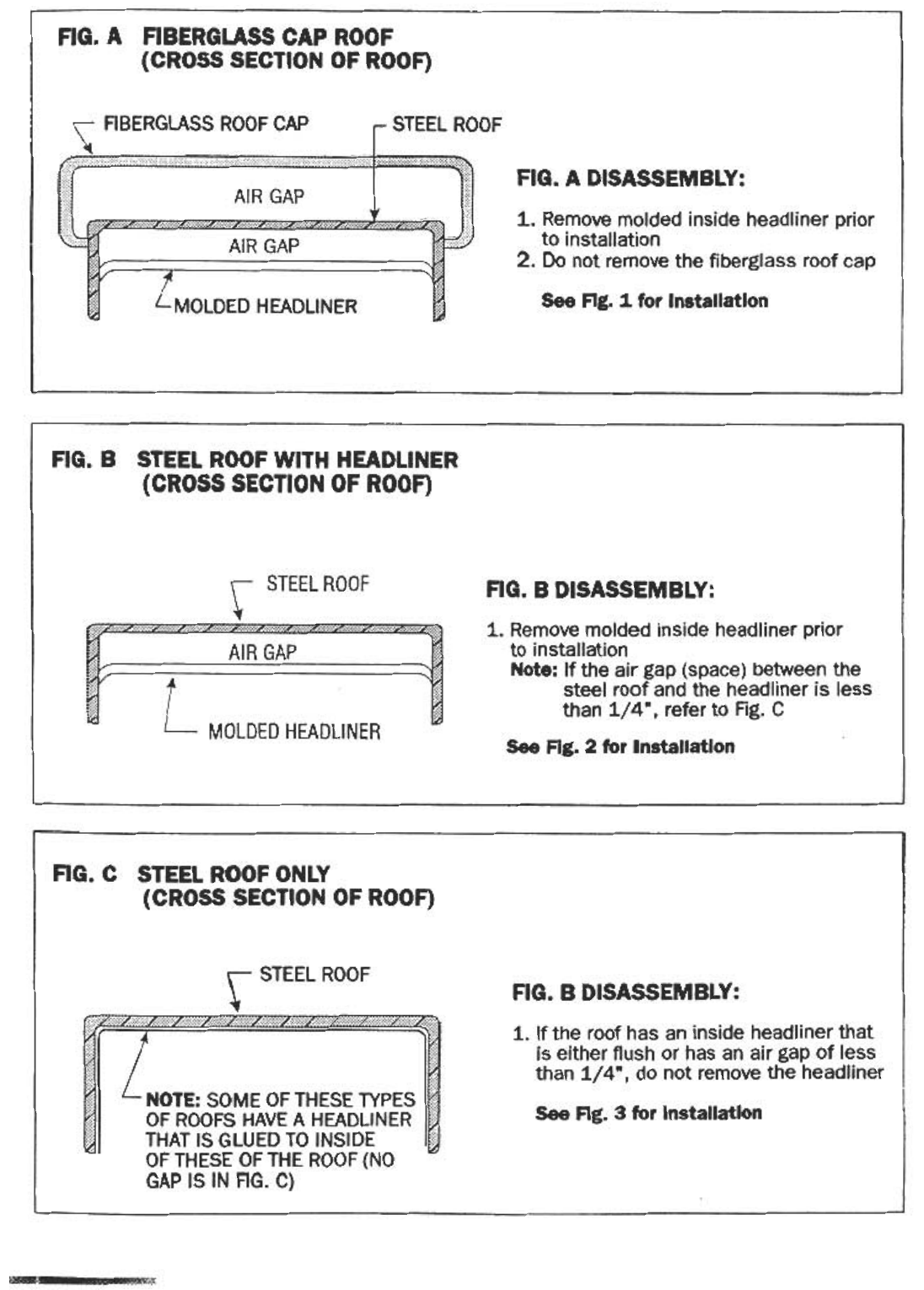 A. Determine the cab roof structure. It is like Fig. A, Fig. B, or Fig. C.