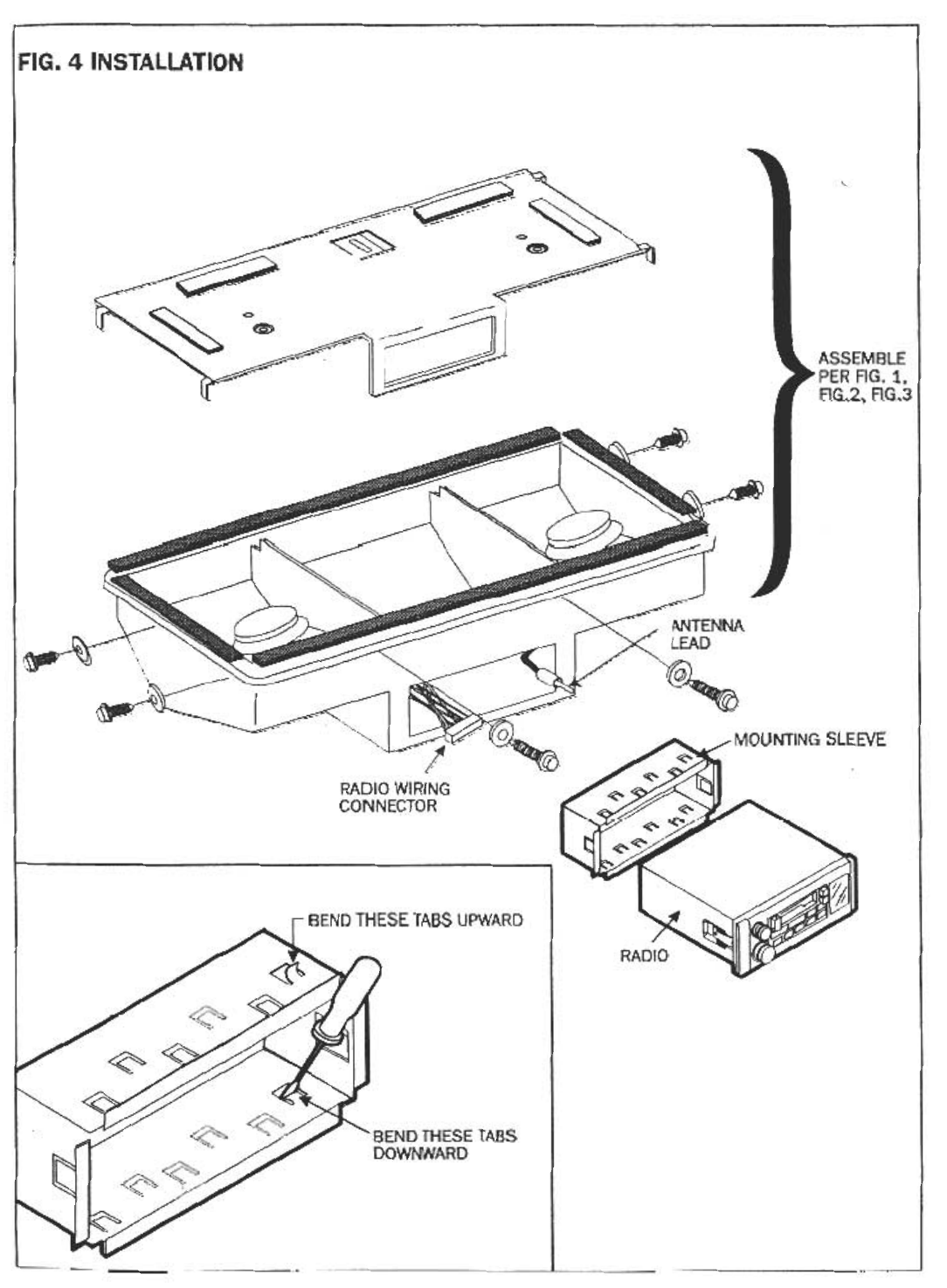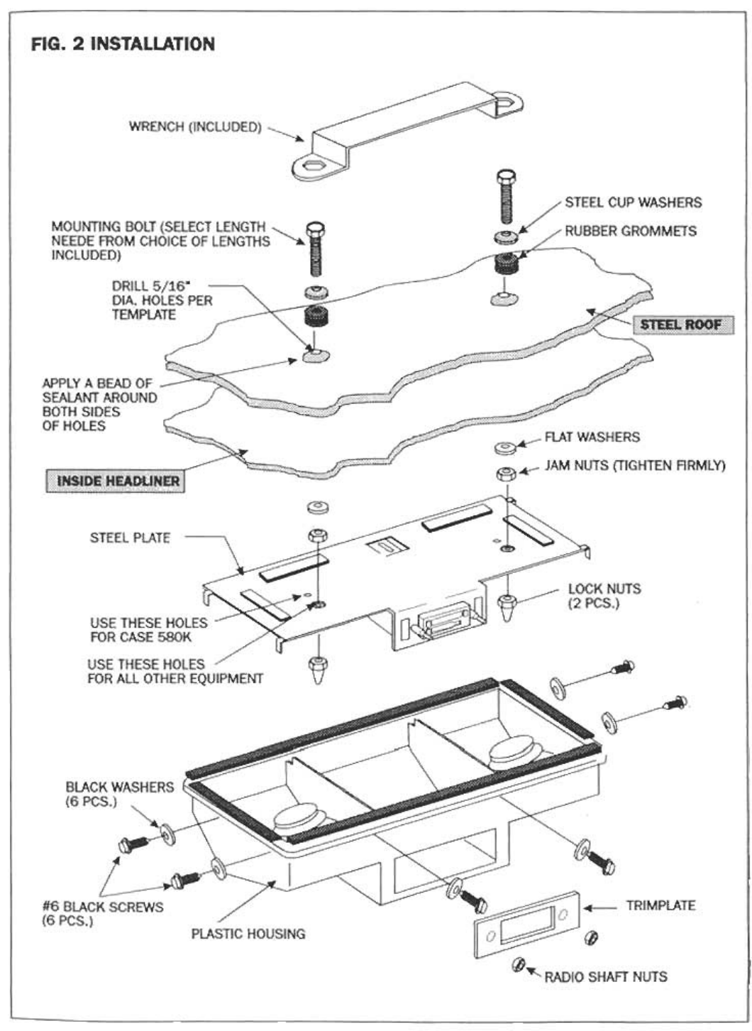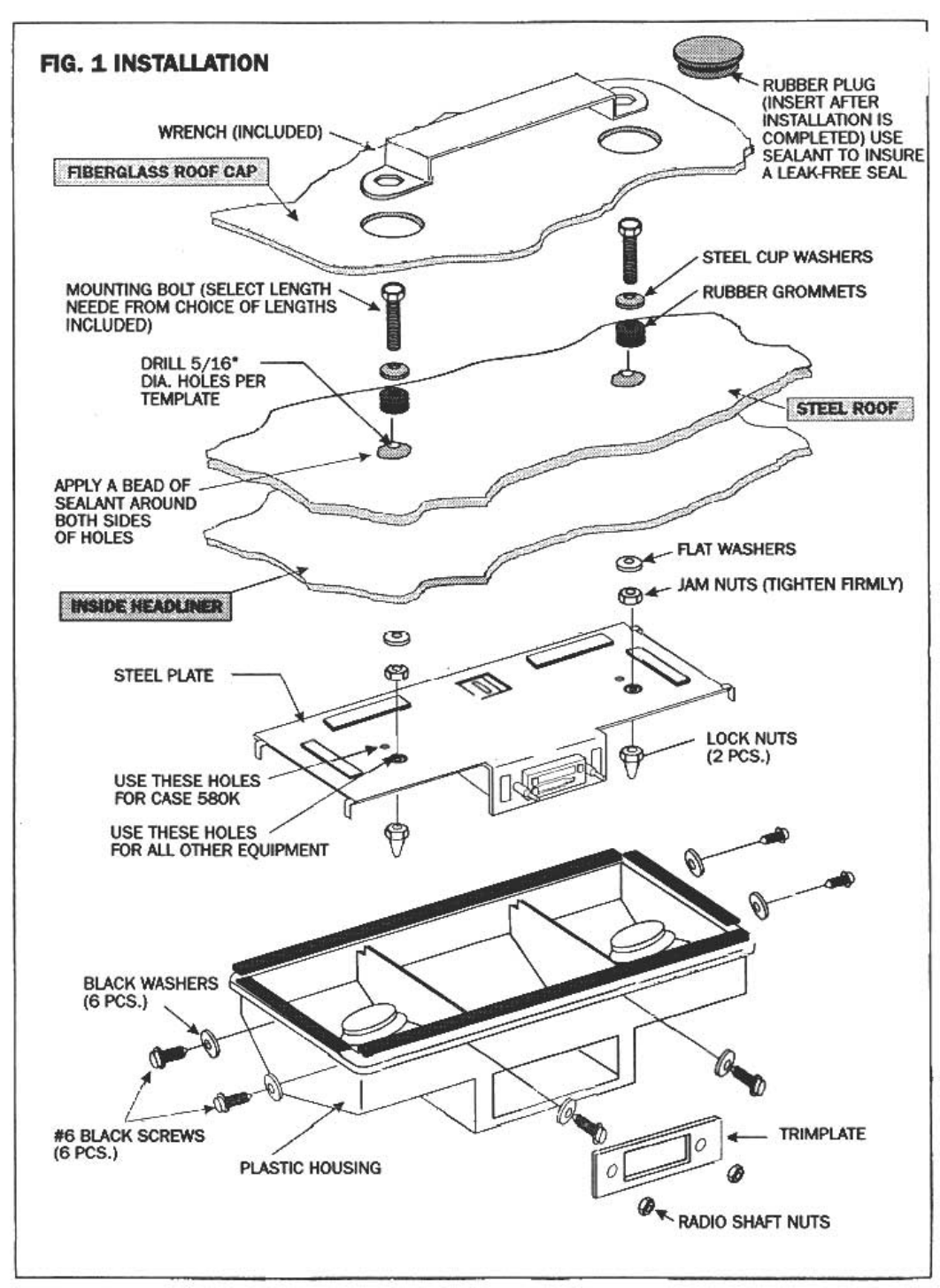 I. The entire housing and mounting plate (less radio) should now be secured to the roof as shown in Fig. 4