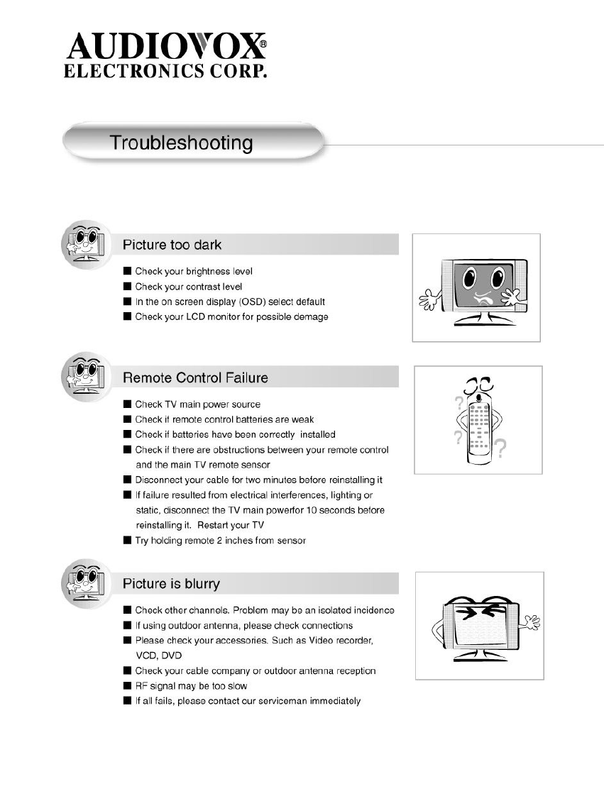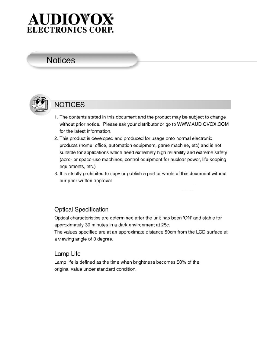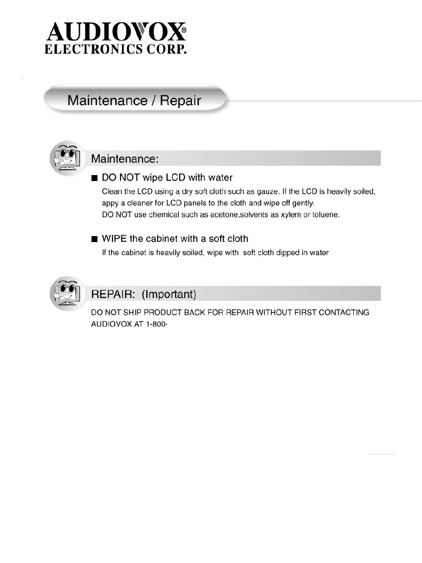 This Audiovox product is a Color Active Matrix liquid Crystal Display (LCD) with an integral
