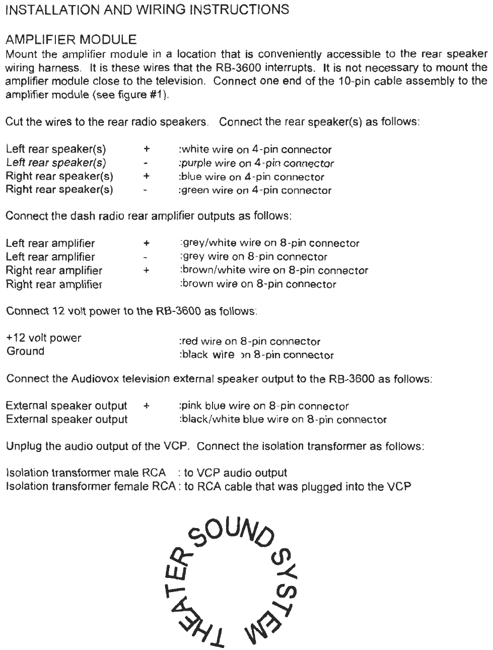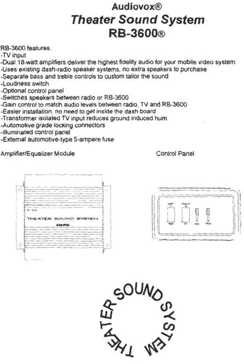 The Audiovox RB-3600 Theater Sound System has been carefully designed to provide years