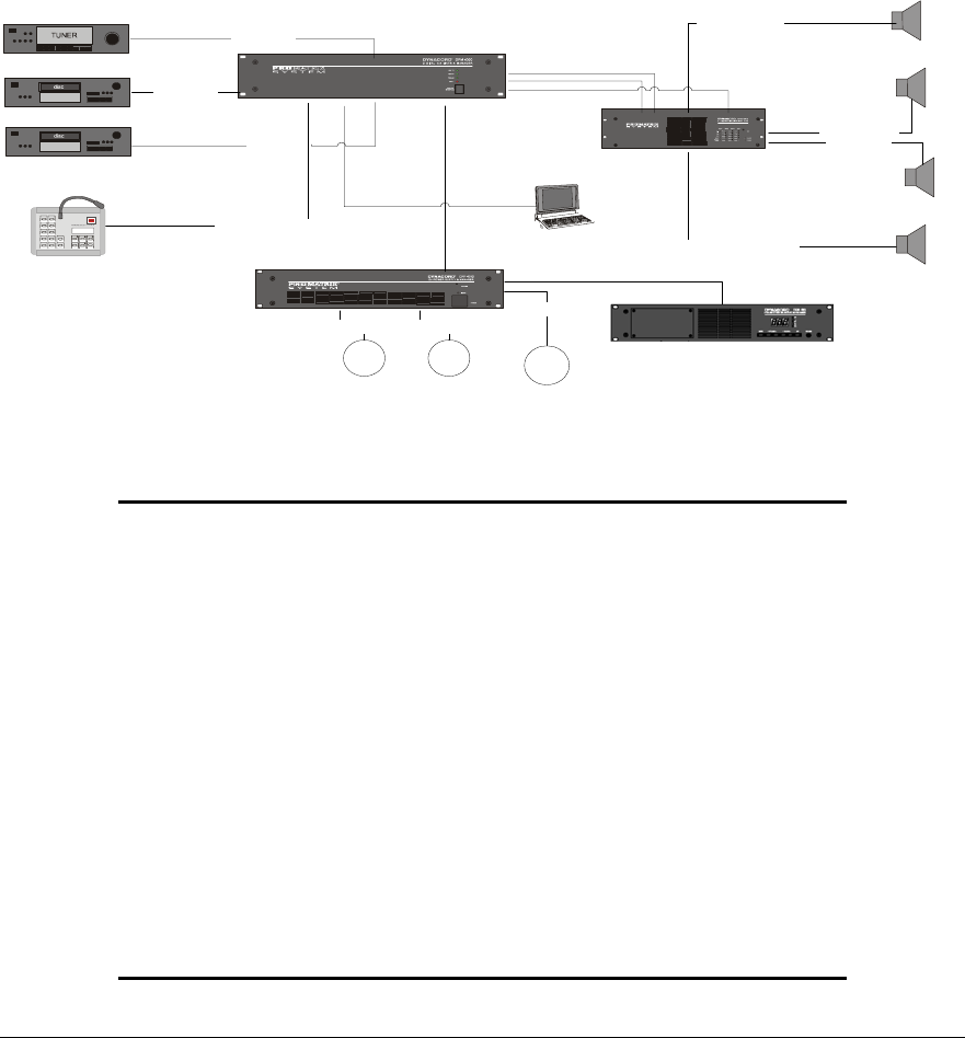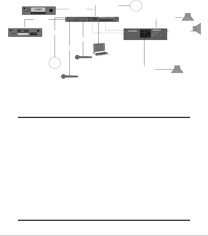 Applying the AT100 to a typical installation, we could connect each output of a power amplifier