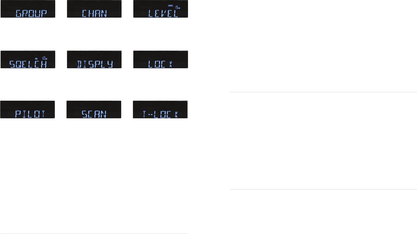 Frequencies in the above chart may be selected by changing GROUP and CHANNEL options from the menu (pg 14).