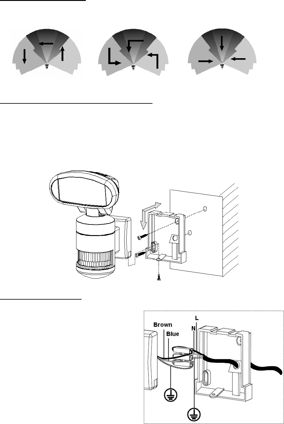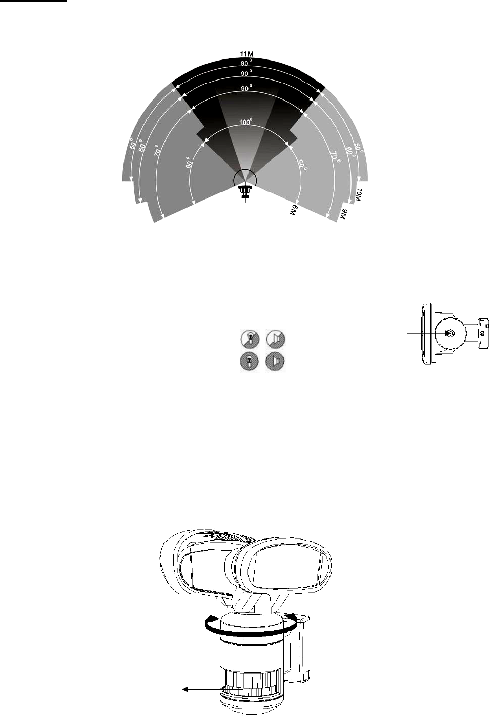 3. Movement will activate the sensor and turn the light on, the light will turn the face to the detected zone for approx. 3