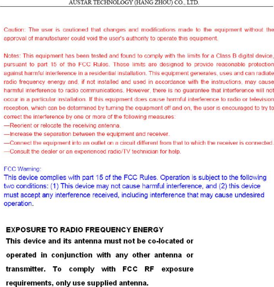 Austar technology (Hang Zhou) Co., Ltd. Bluetooth Car Kit User s manual