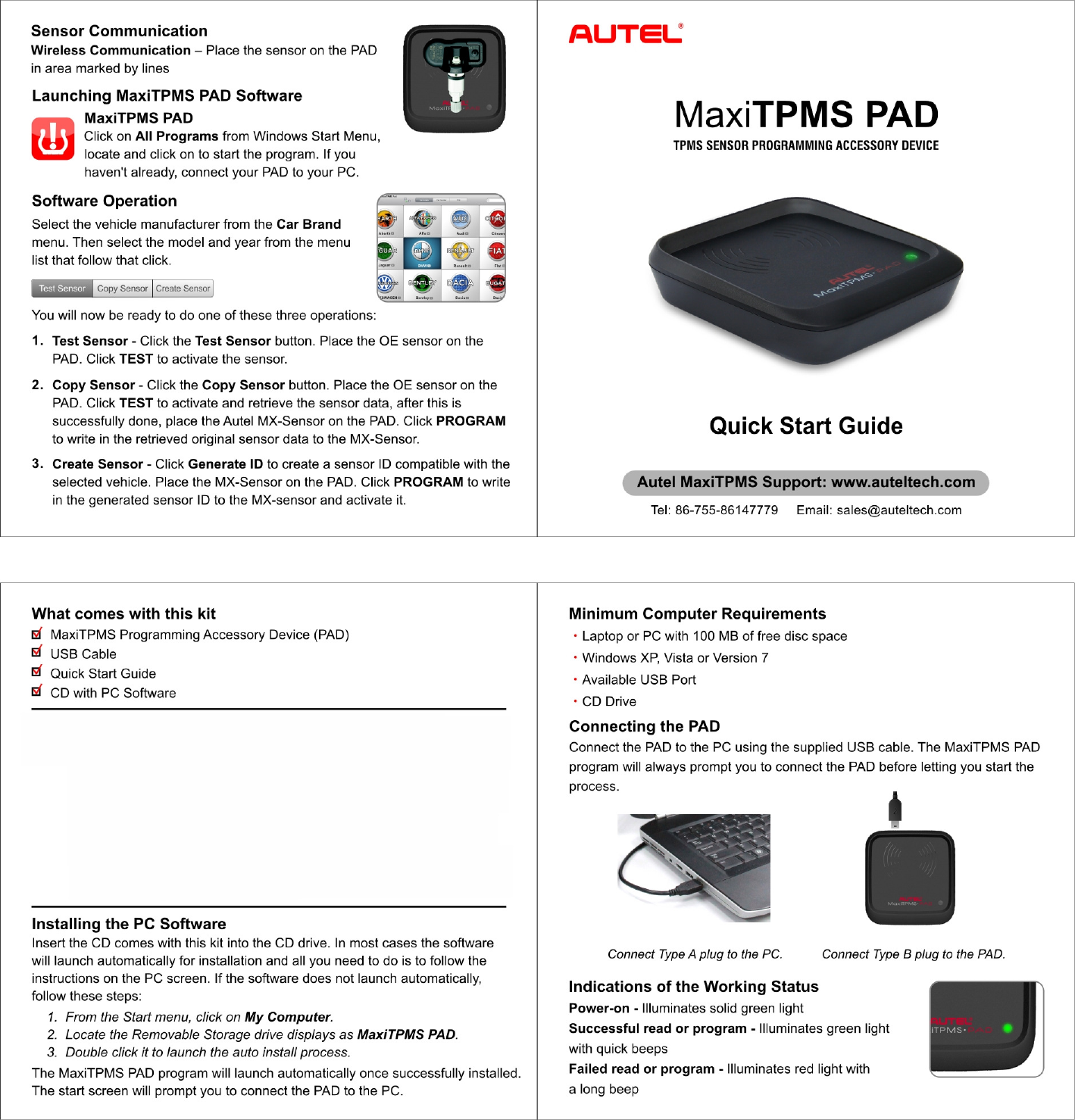 Autel Intelligent Technology 3017315433 MaxiTPMS-PAD User Manual