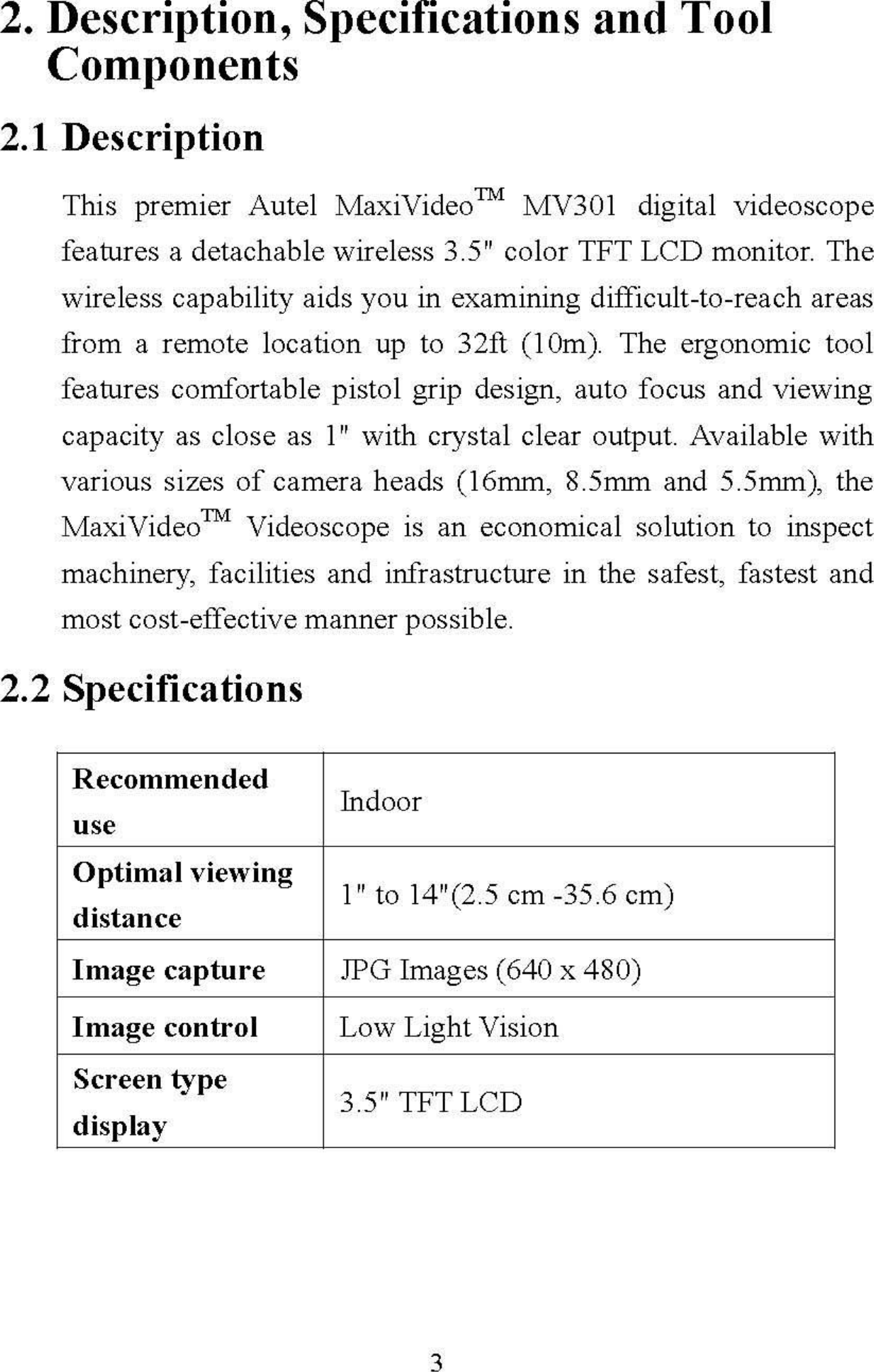 Autel Intelligent Technology MAXIVIDEOMV301 MaxiVideo User Manual
