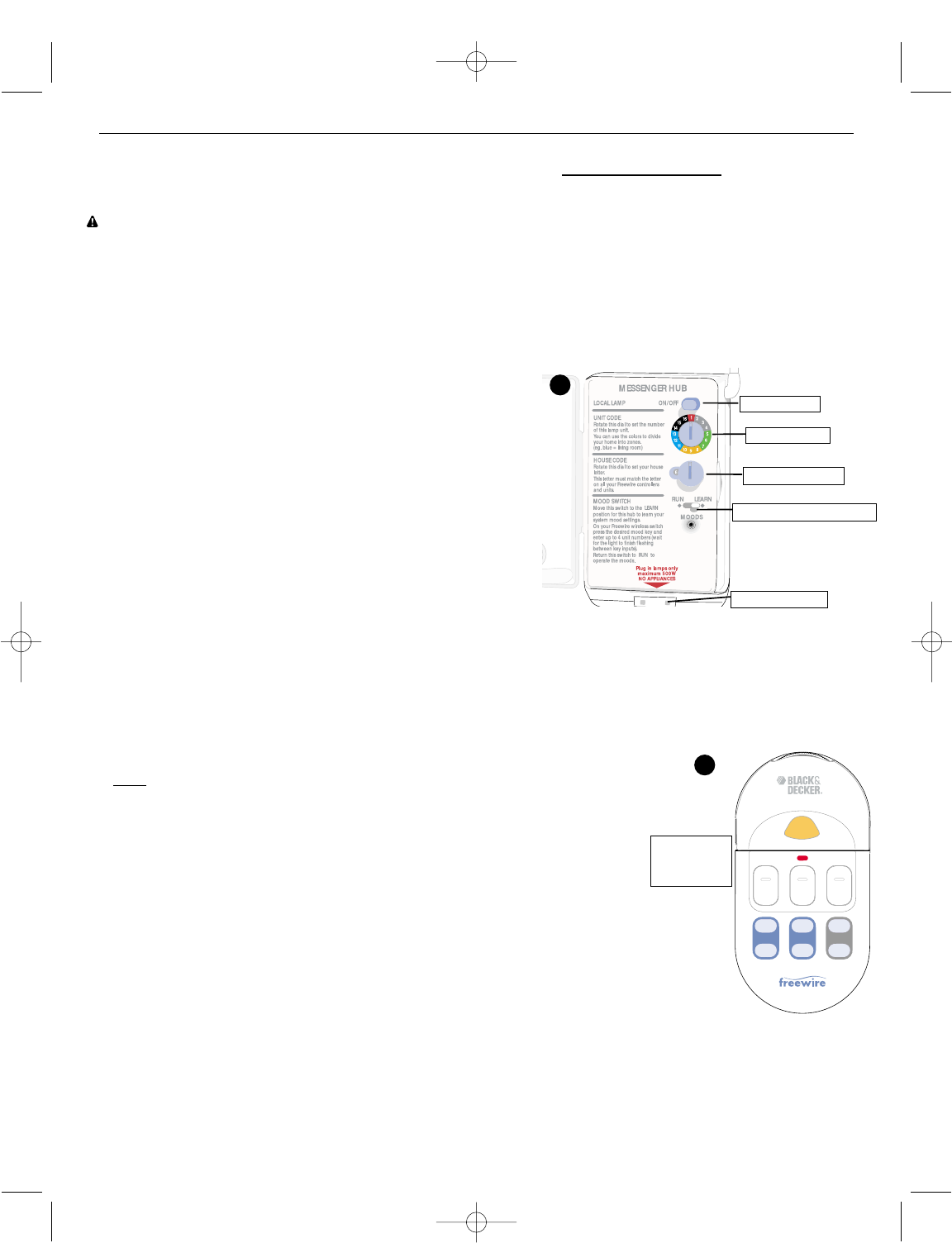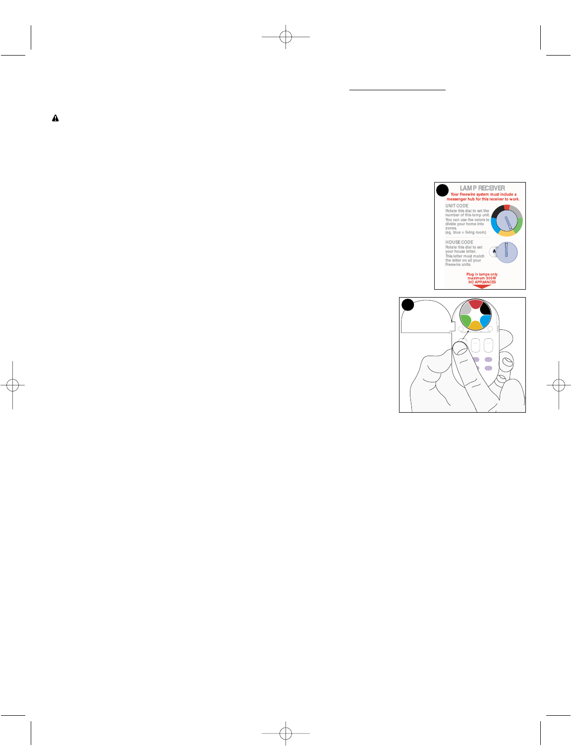 •Don’t use a LAMP RECEIVER to control a lamp or fixture which already has a dimmer on it.