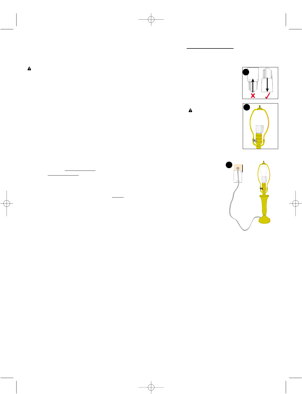 WARNING: Use only incandescent bulbs in lamps that are to be controlled by Lamp Receivers. Using any other type bulbs could damage
