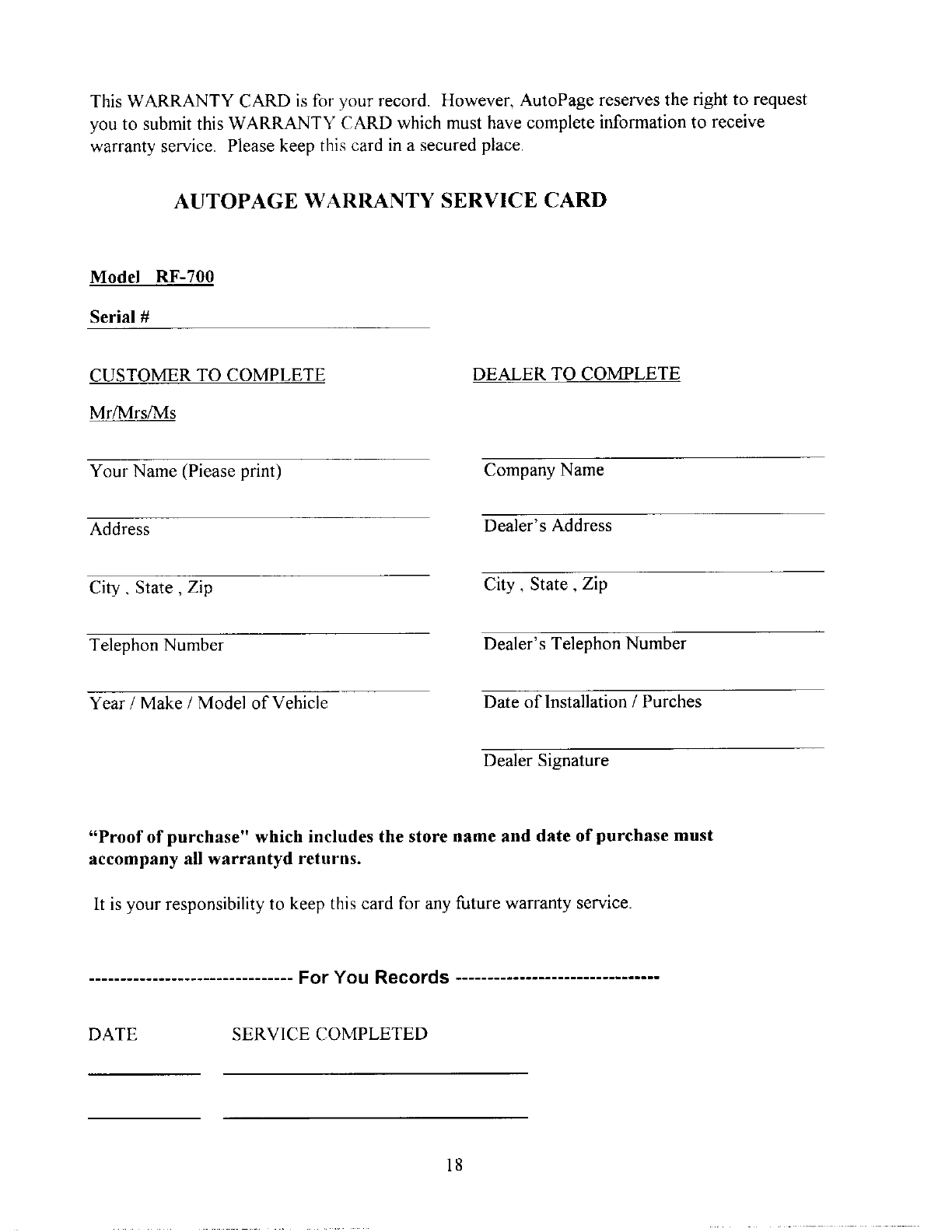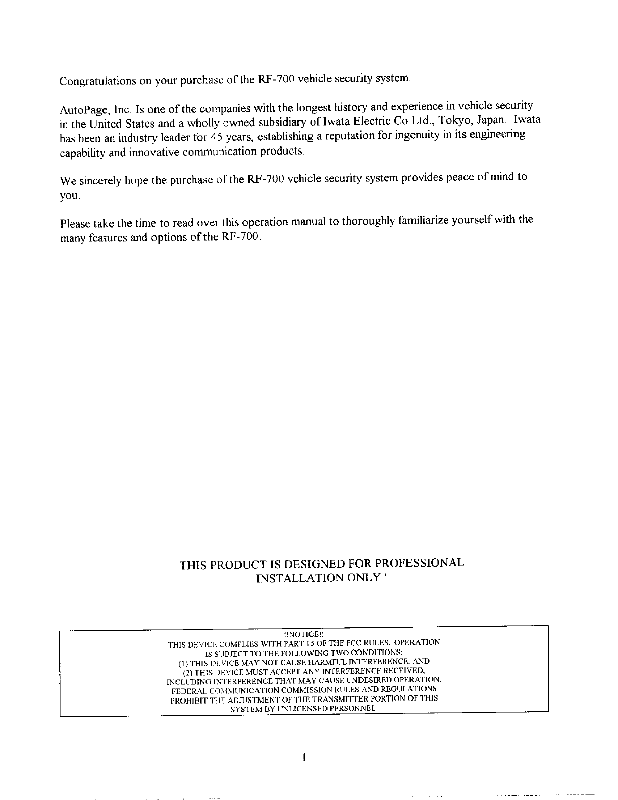 Auto Page AT64 Automobile Scurity Device User Manual 50044