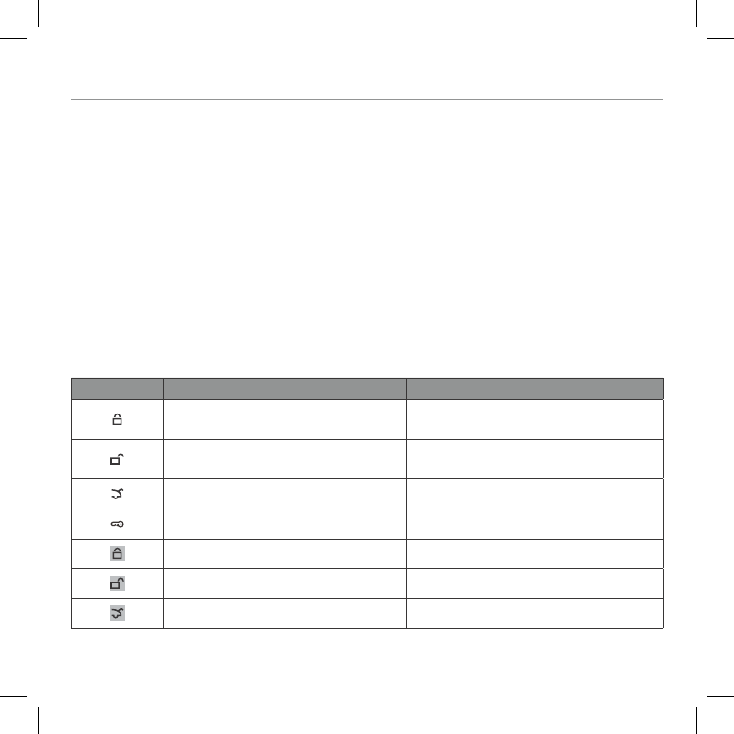 Disarm* 2 chimes + 2 flashes Access your vehicle by unlocking the doors