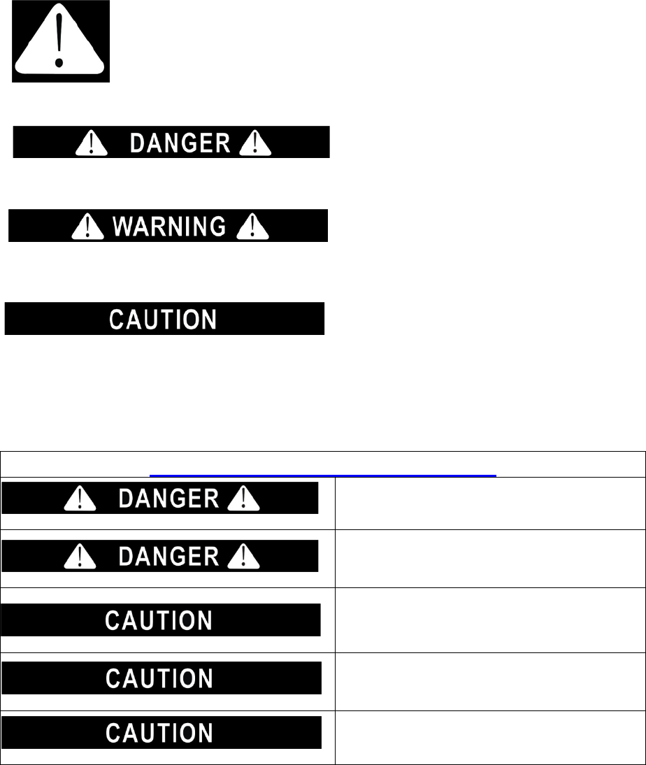Alert Symbol and either the words “DANGER”, “WARNING” or “CAUTION”.