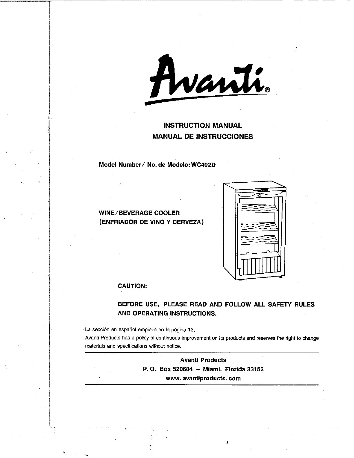 : Avanti Avanti-Wc492D-Users-Manual-464912 avanti-wc492d-users-manual-464912 avanti pdf