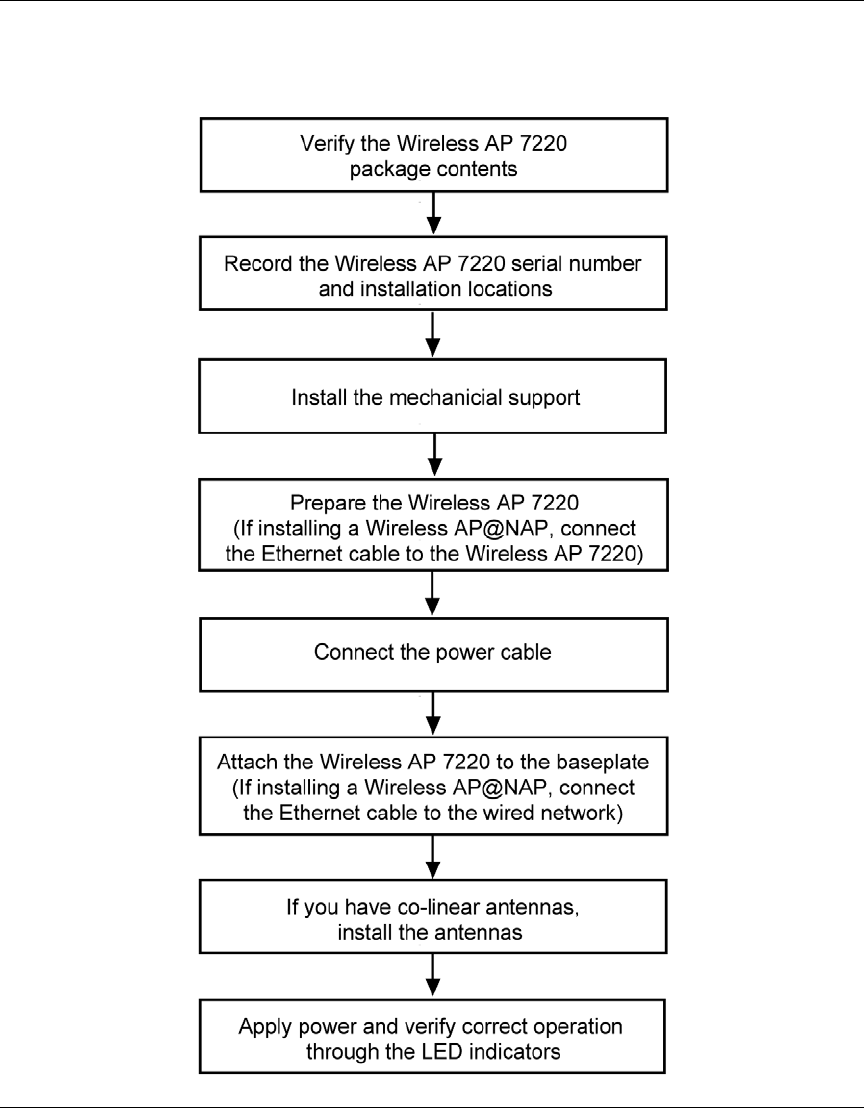 The Wireless AP 7220 unit is always installed vertically with the baseplate facing