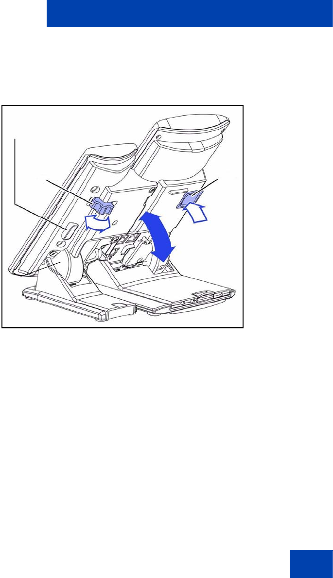 5. Adjust the height of the IP Deskphone tilt adjustment to a comfortable