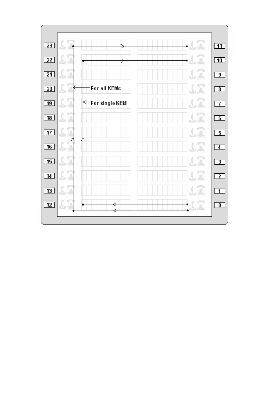 The IP Phone KEM (see Figure 1 on page 3) has 1 LCD between 2 rows of 12 programmable keys