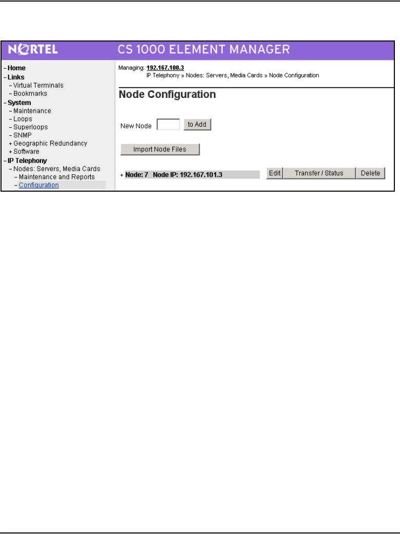 - Configuration of IP Telephony nodes using Element Manager