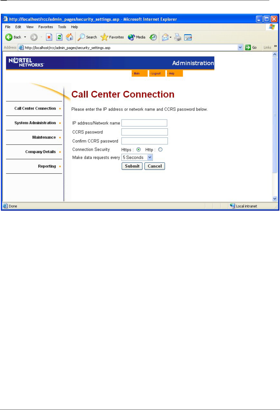 Confirm CCRS Password fields of the Call Center Connection Page, as detailed on page