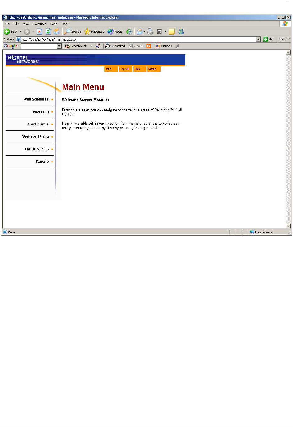 When you have checked these items, Log Out of Nortel Networks Reporting for Call Center,