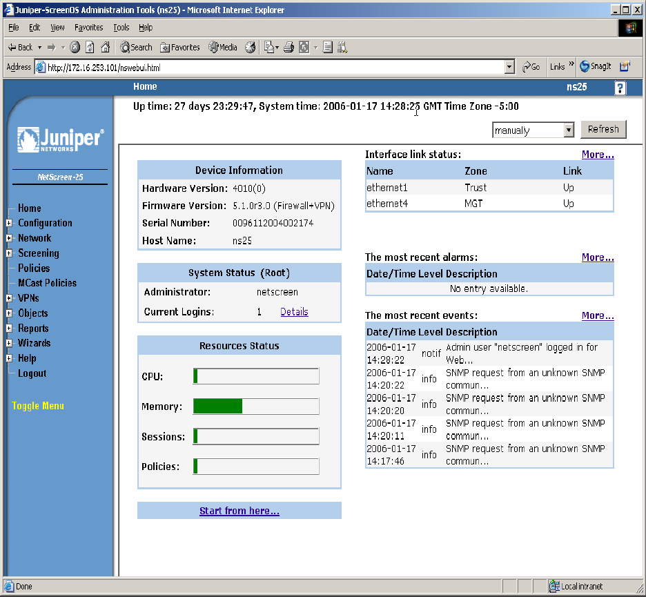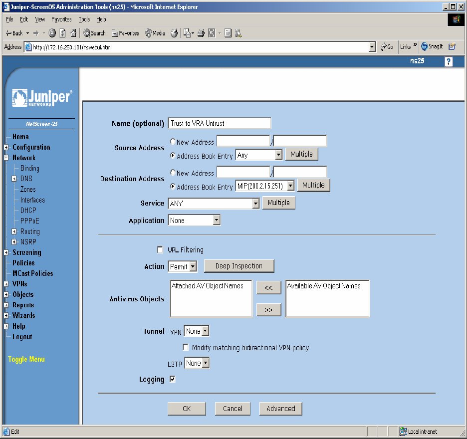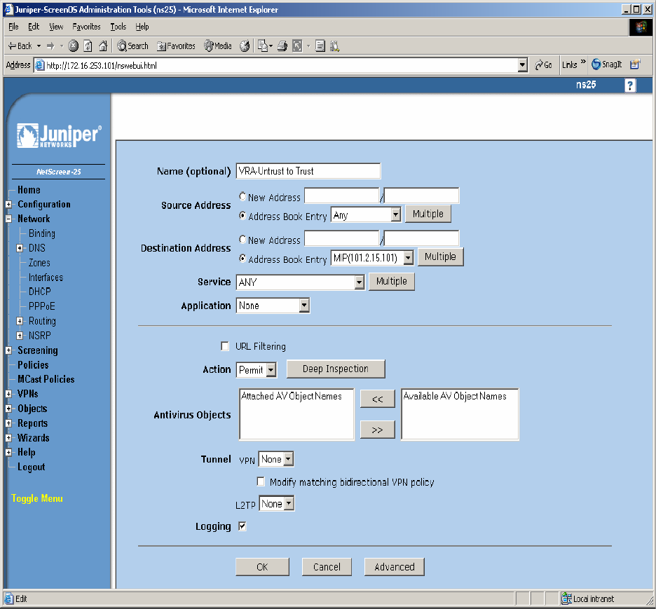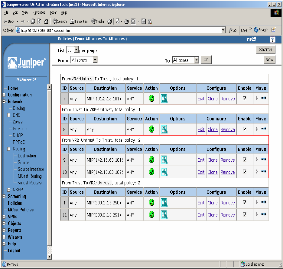 Step 11. From the NetScreen-25 Firewall Web Admin screen, select Policies in the left window