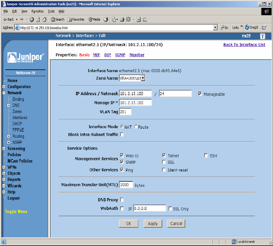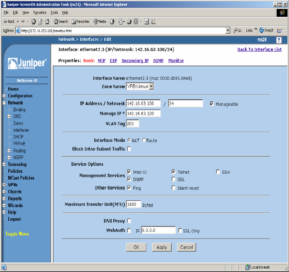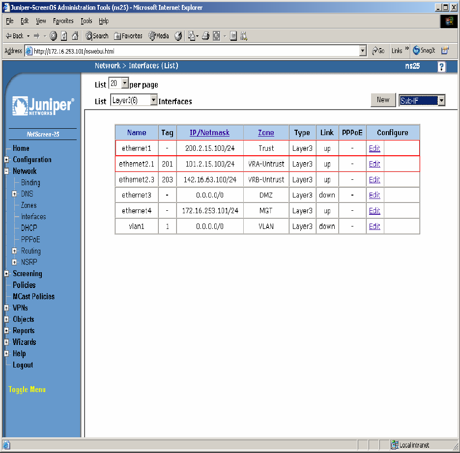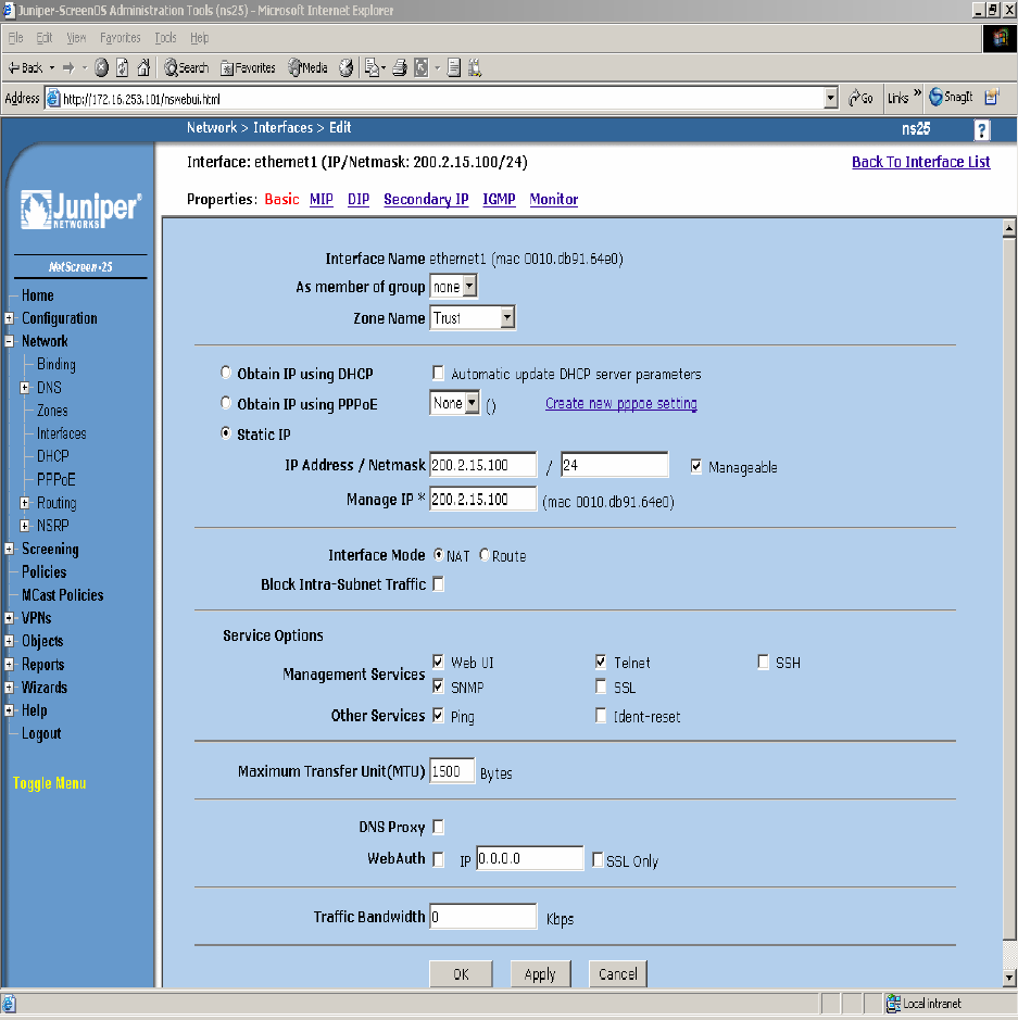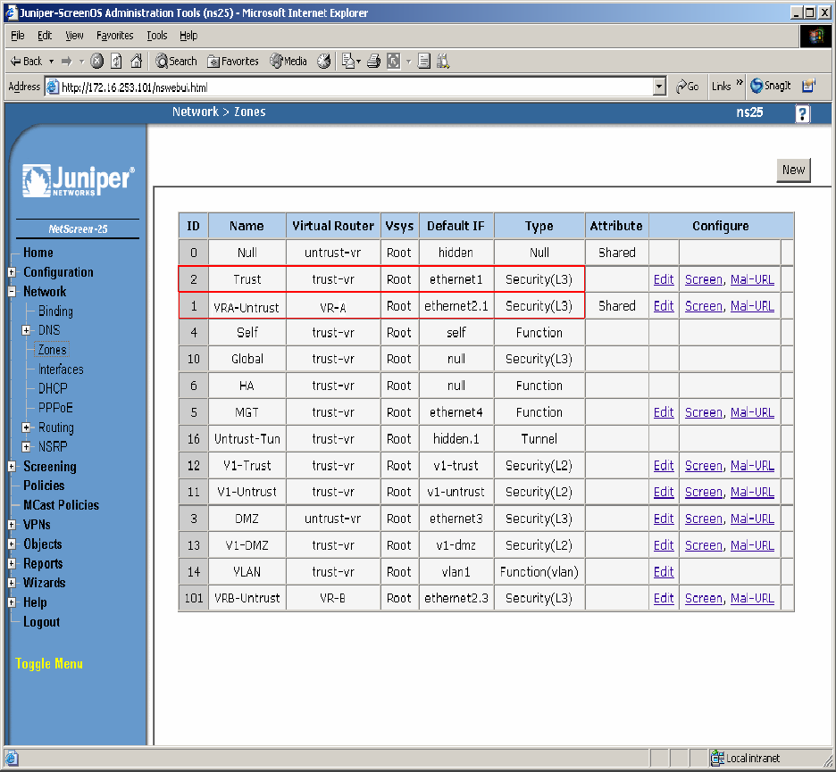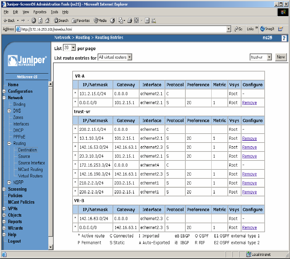 [1] Configuring the Juniper NetScreen-25 Firewall, User Manual, Release 5.1.0.