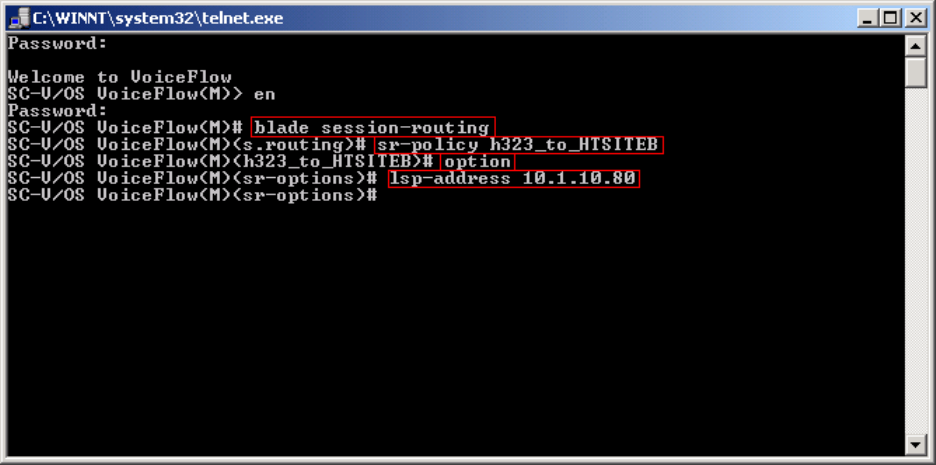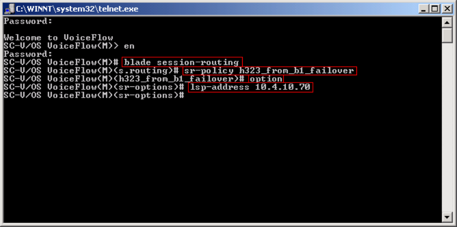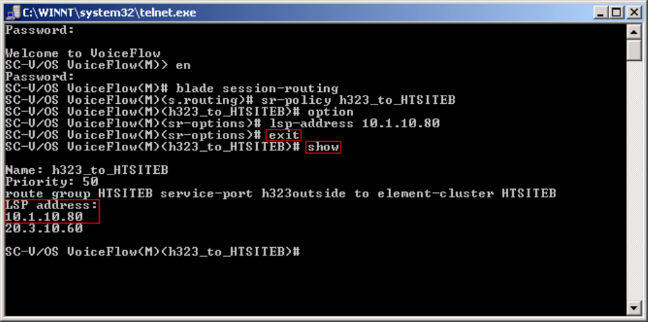 Survivable Processor (LSP) enterprise site. The results should have no packet loss.