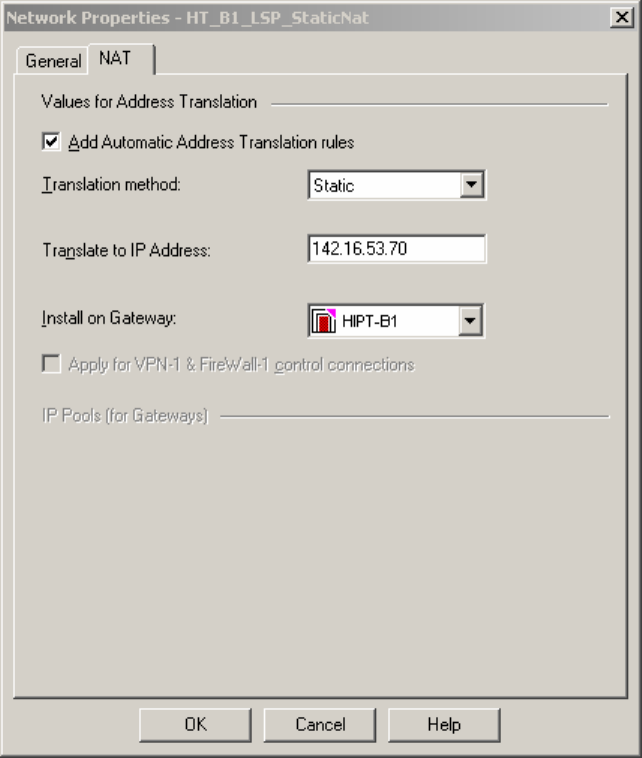 HIPT-B1_eth4. Add the static 1-to-1 NAT called “HT_B1_LSP_StaticNat” from the Not in