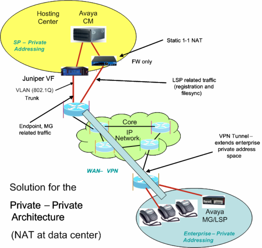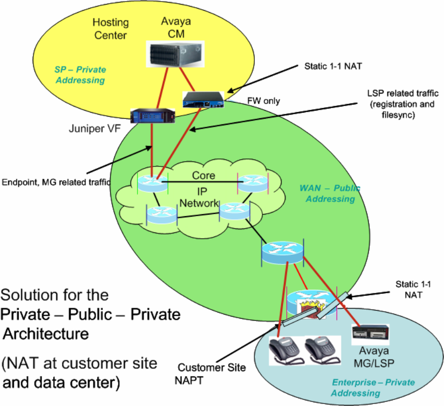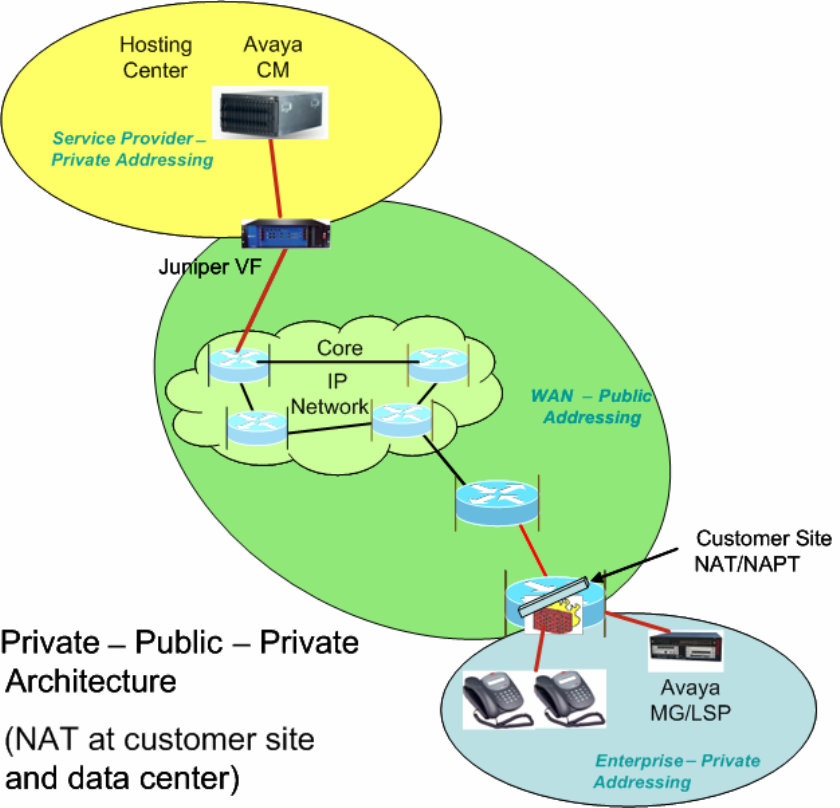 Address Translation (NAT) functions for the Avaya VoIP network components. The Juniper VF