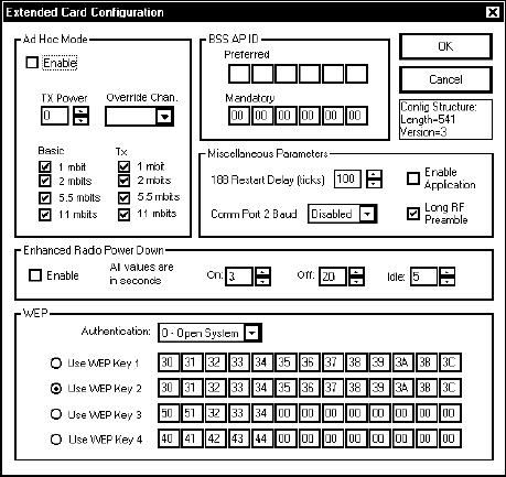 Ad Hoc mode (ESS ID, WEP, etc.).