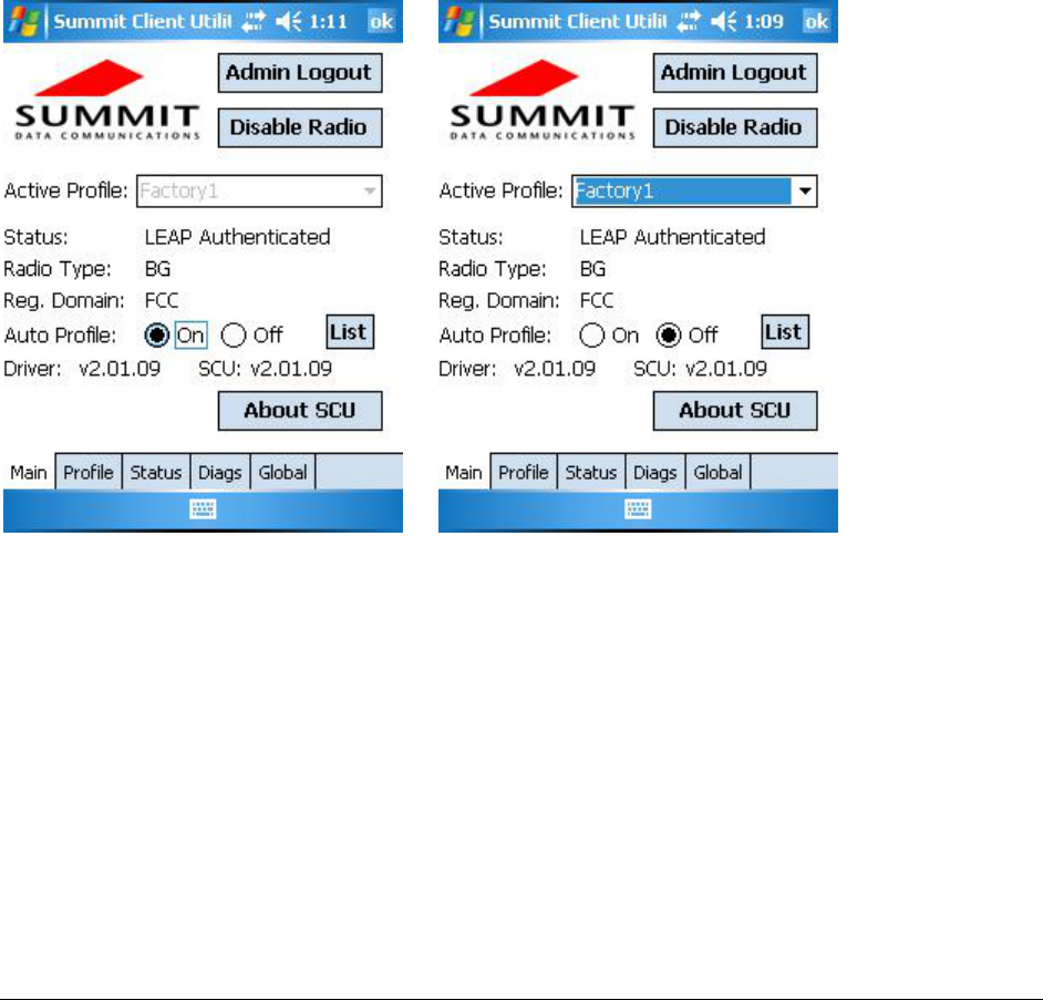 select from among created profiles. When the facility is active and the Summit radio makes its first