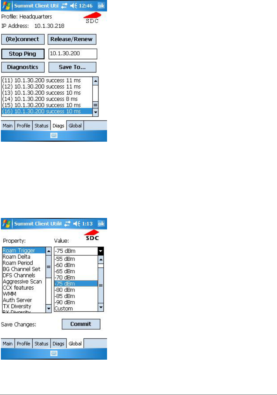 Diags also will stop the ping, as will Pings will continue until you tap the Stop Ping button, move to