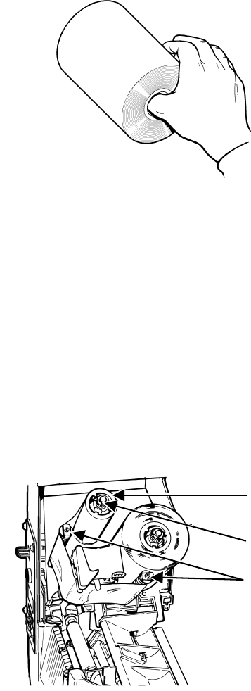 leader Wrap around a new roll of ribbon with printing on it.
