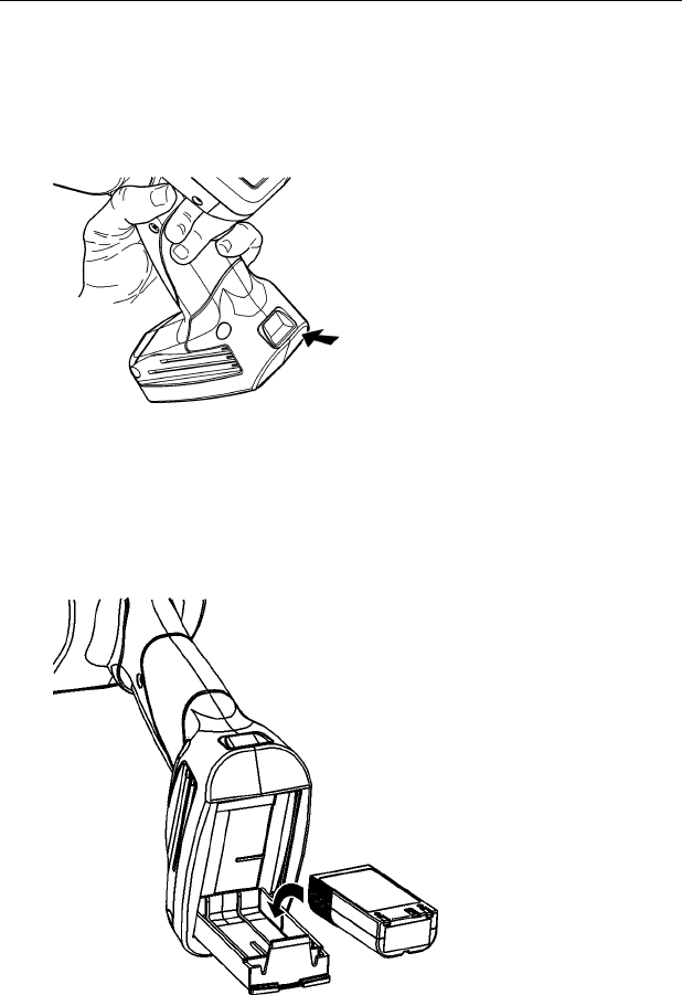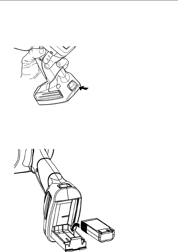 battery release button on the handle with your other