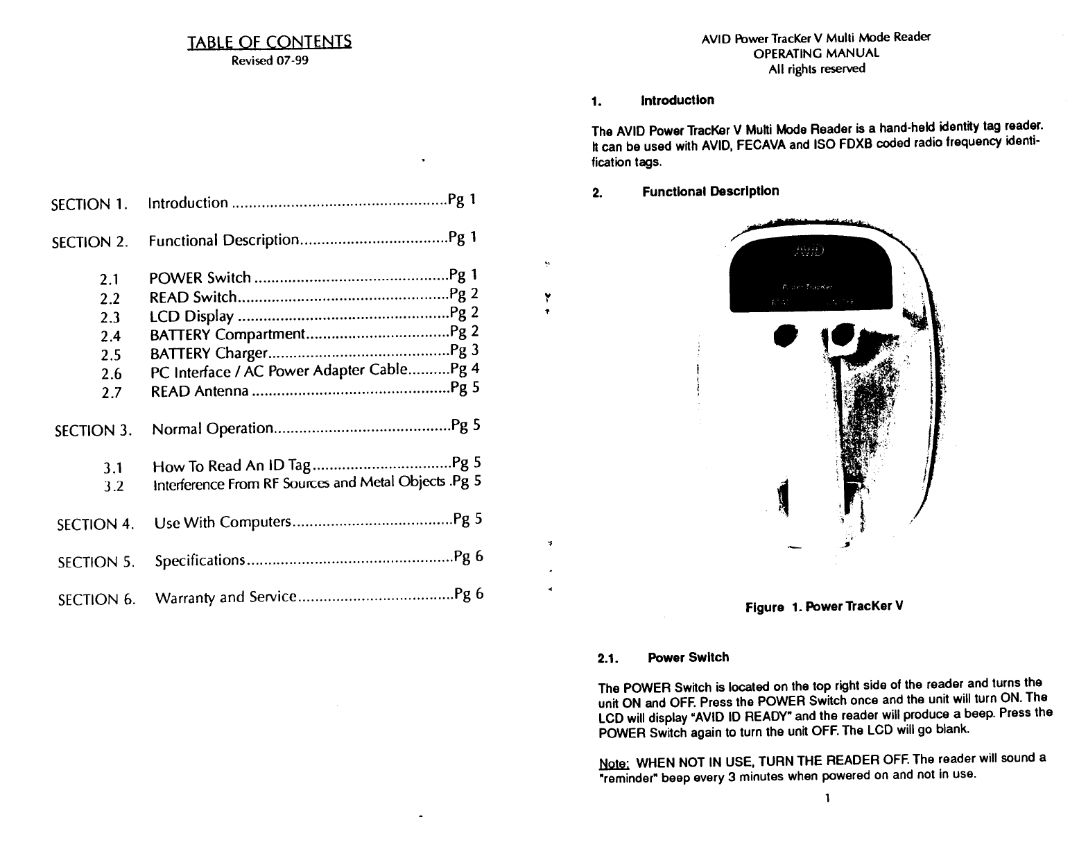 AVID ID Systems, Inc. Tag Reader Owners Manual