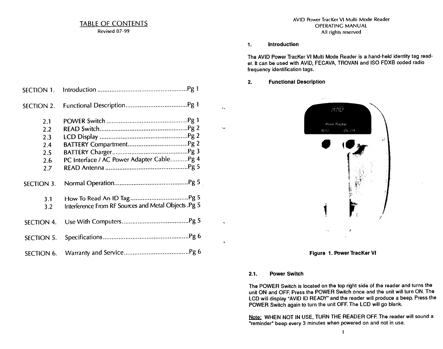 AVID ID Systems, Inc. Tag Reader Owners Manual