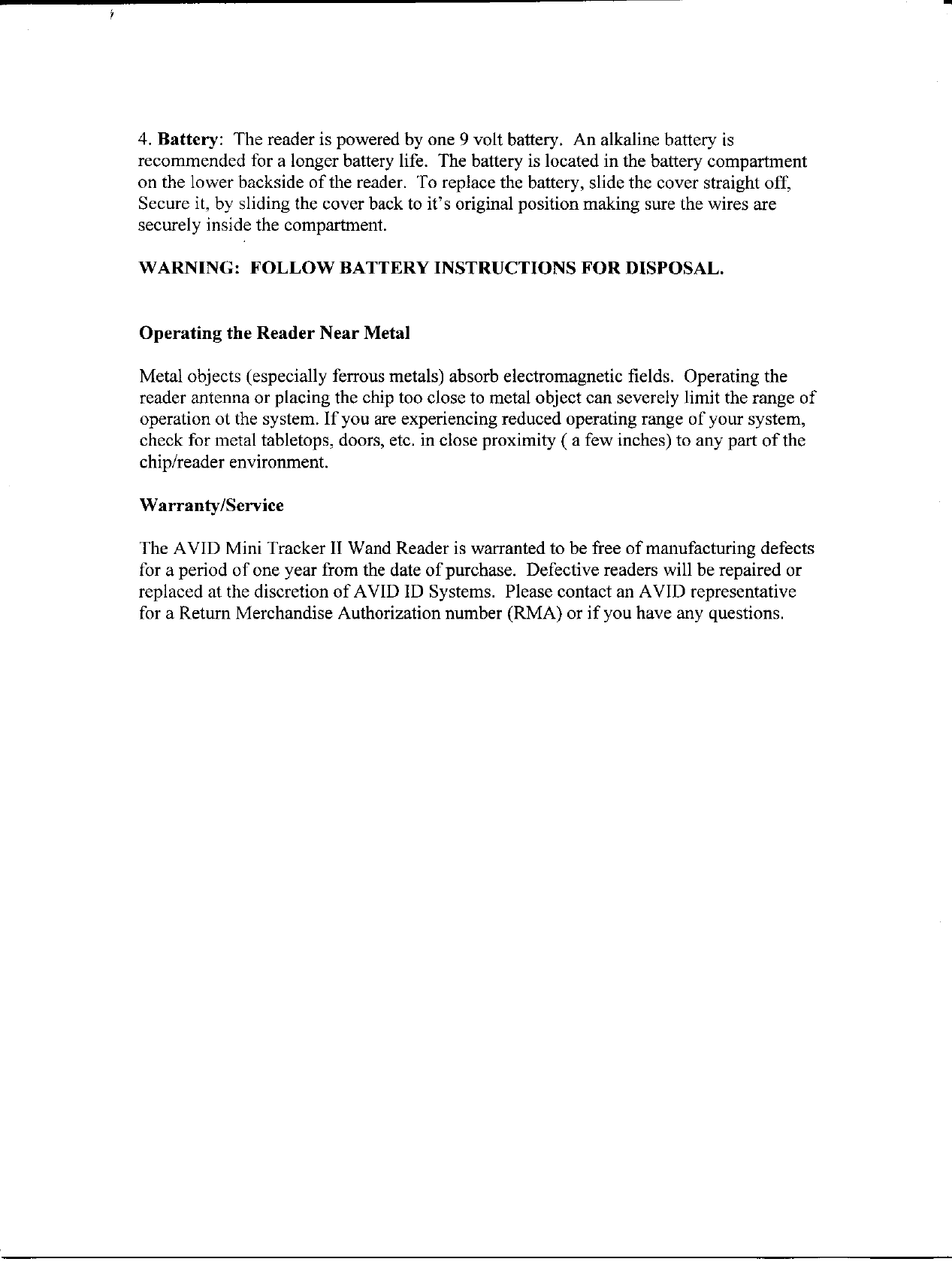 Avid Identification Systems 125-AV1027ID RF ID Reader User Manual Pt 3