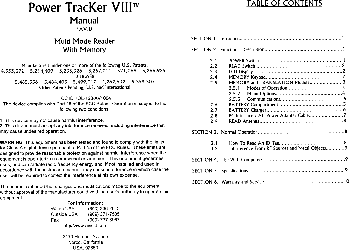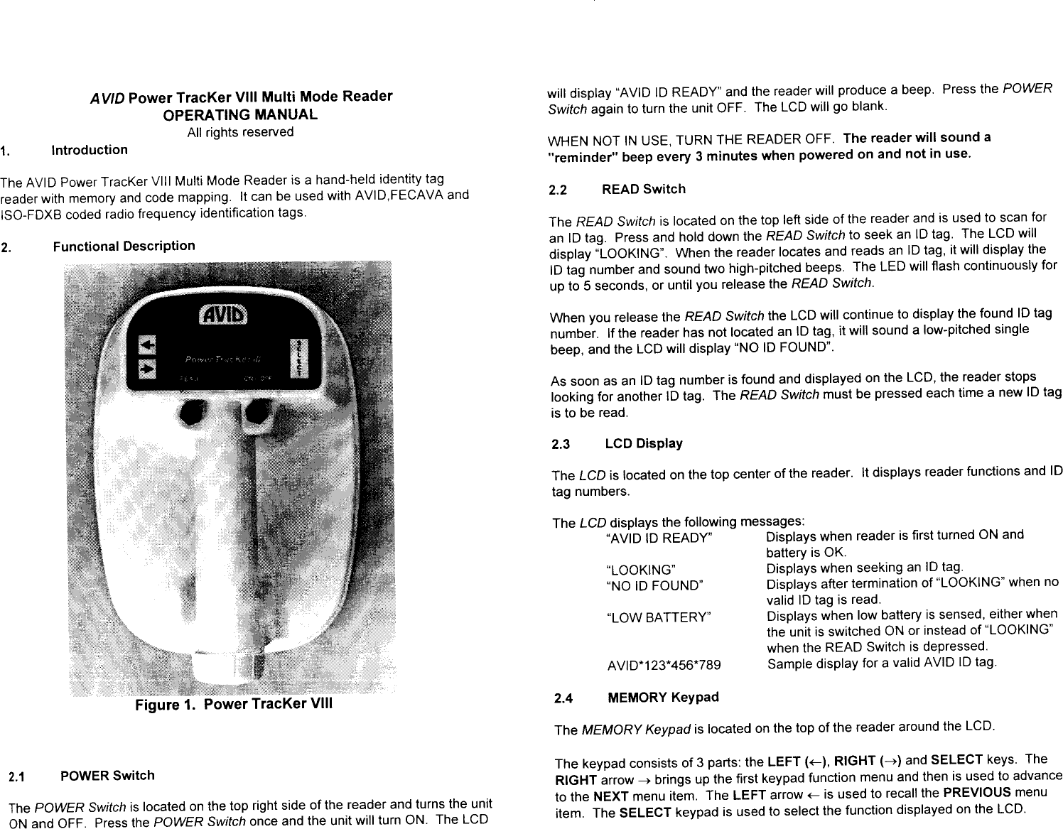 AVID ID Systems, Inc. Tag Reader Owners Manual