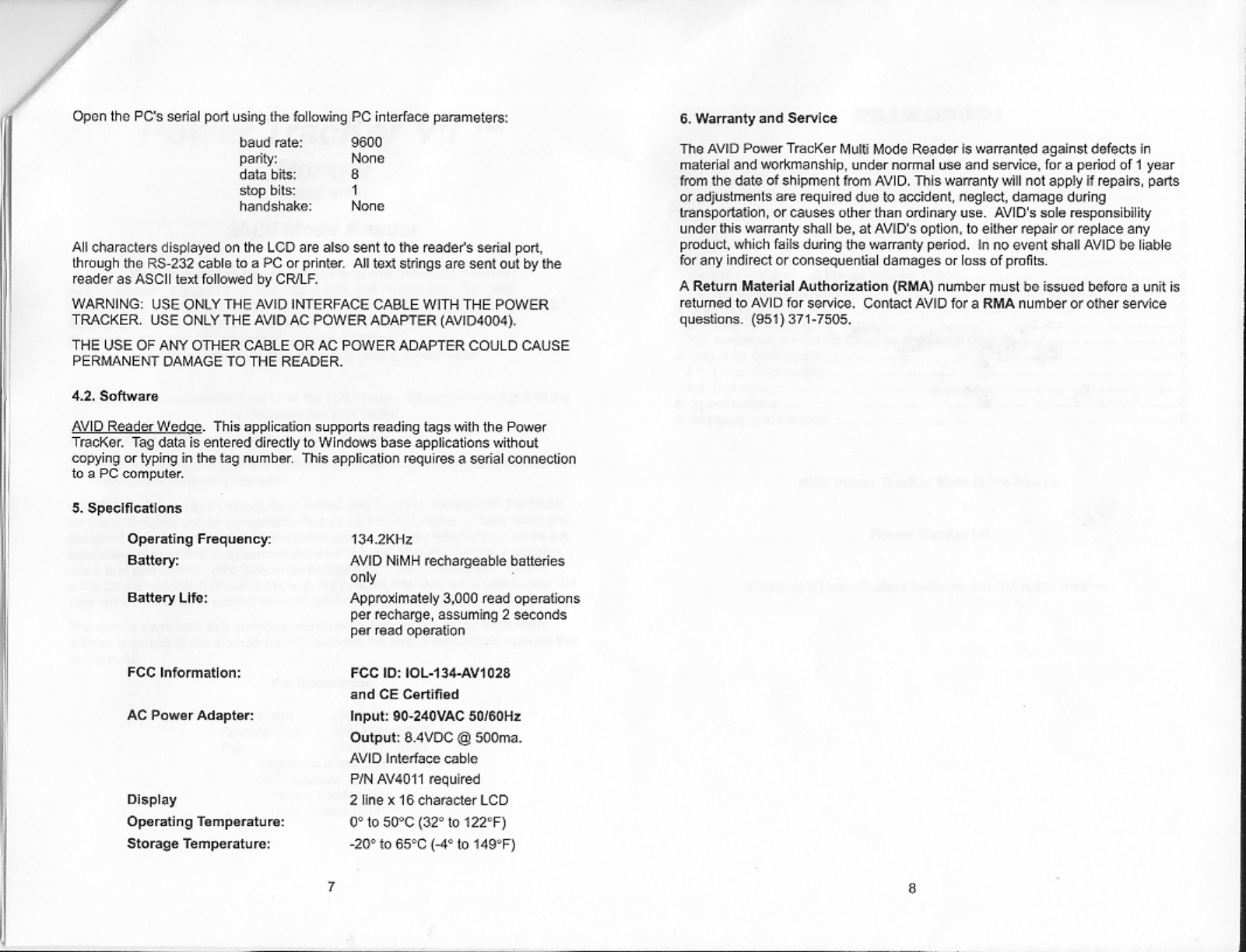 Avid Identification Systems 134-AV1028 RF ID Reader User Manual Pt 5