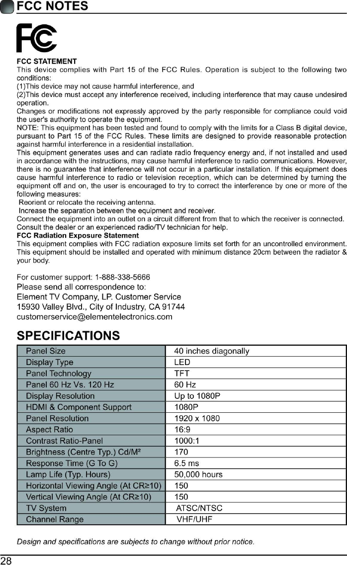 AVision Technology ELST4017 40 inch FHD Digital LED TV with Wi-Fi User Manual