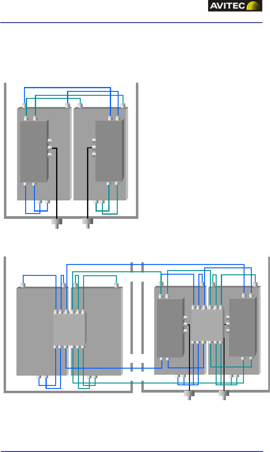 Avitec recommends a spacing of two GSM channels between the carriers in the amplifier chains. These two