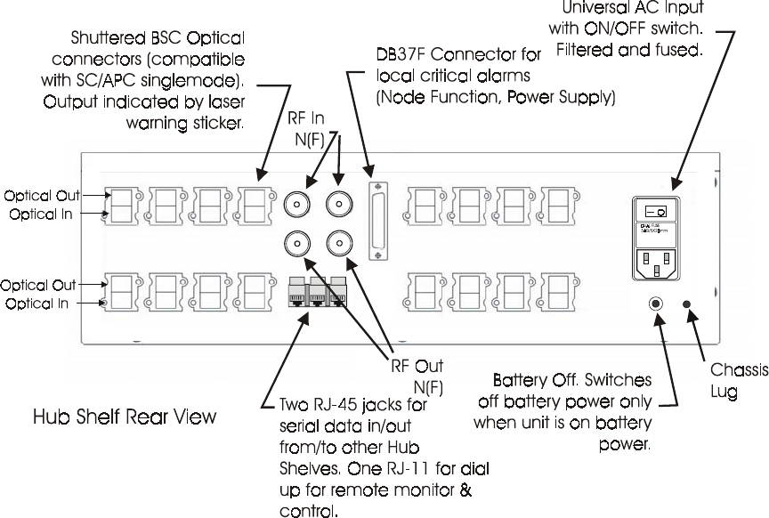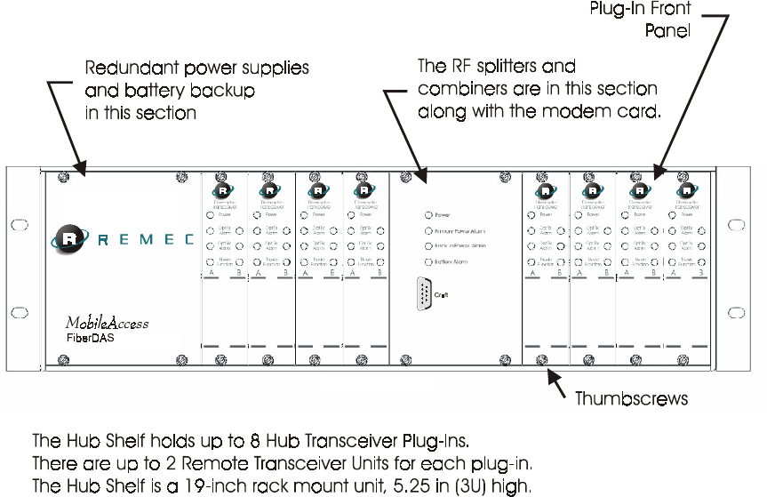 rack-mounted chassis. The Hub Shelf holds up to 8 Hub Transceiver Plug-Ins. The Hub Shelf is located in