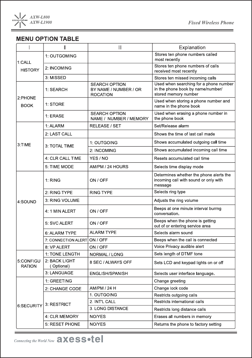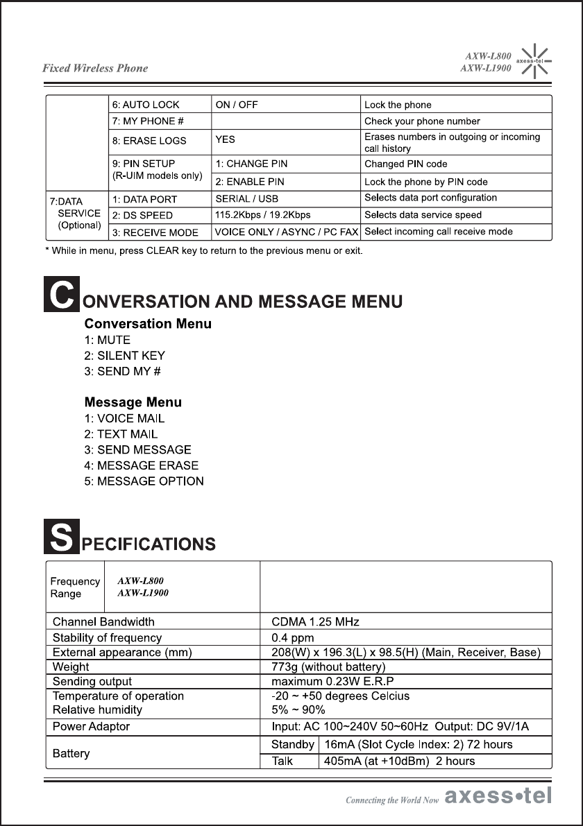 Axesstel AXWL800 Fixed WLL Telephone (Cellular CDMA) User Manual 01