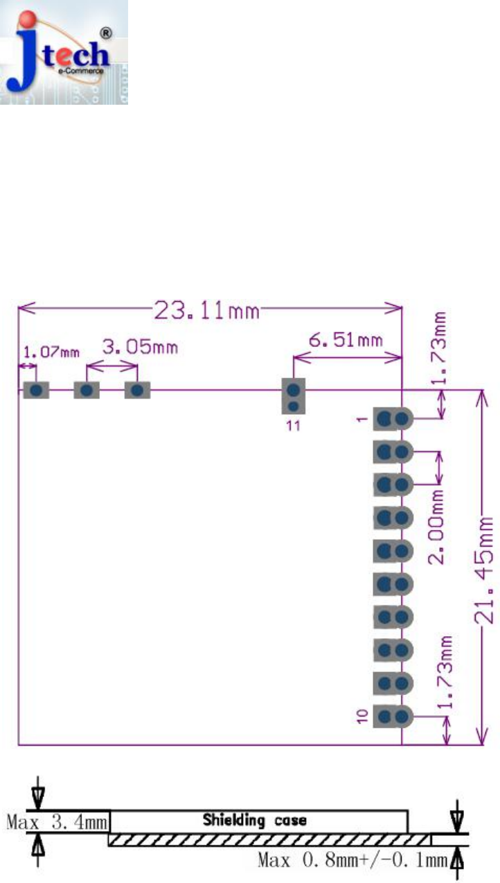 Dimension 23 (L) x 21.5(W) x 4.2(H) mm (+/-0.5mm) - With External Crystal
