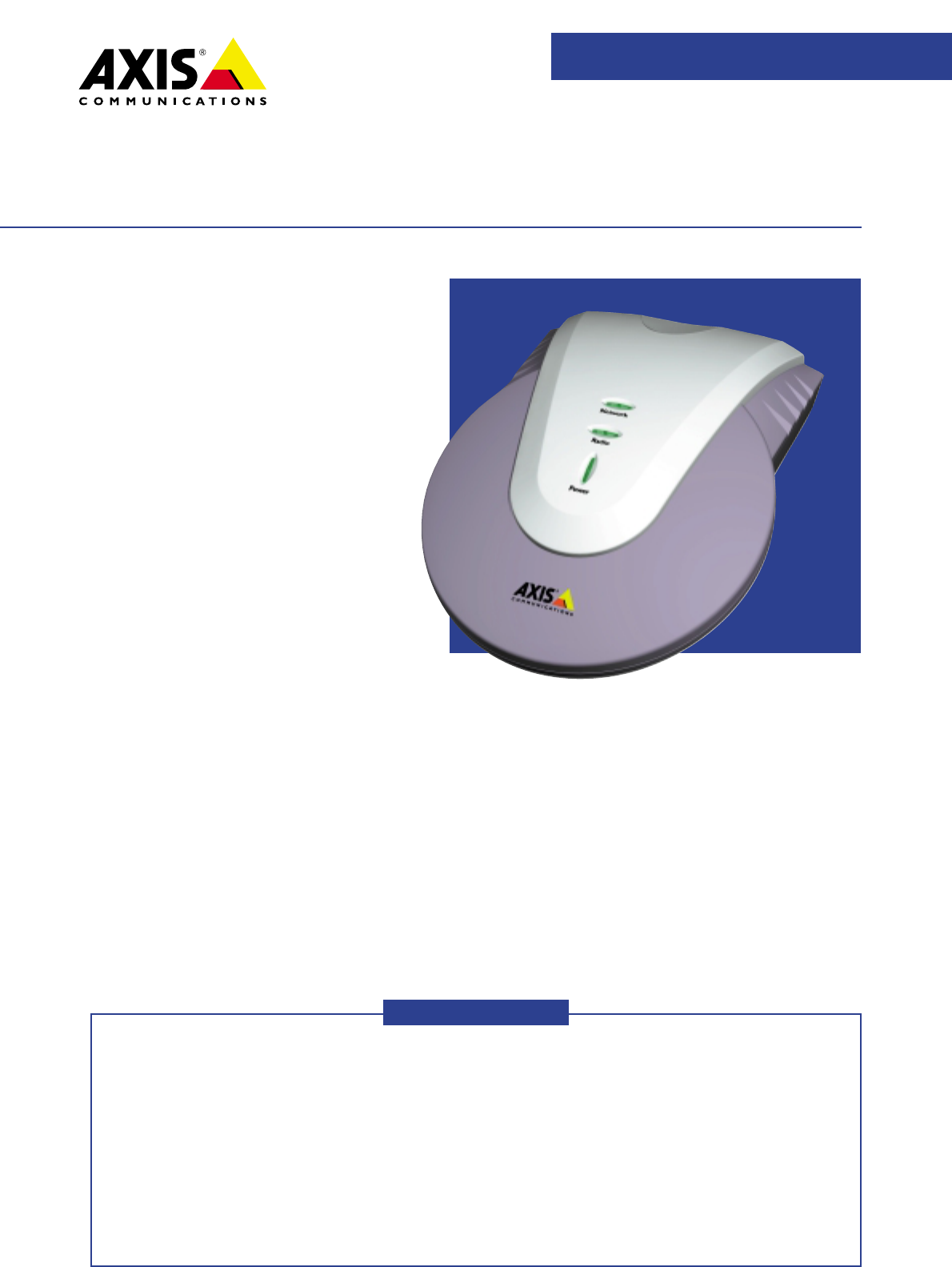 ©2000.Axis Communications AB.The Axis logo is a registered trademark of Axis Communications AB. BLUETOOTH is a trademark owned by Telefonaktiebolaget L M Ericsson,Sweden and licensed to Axis Communications AB.
